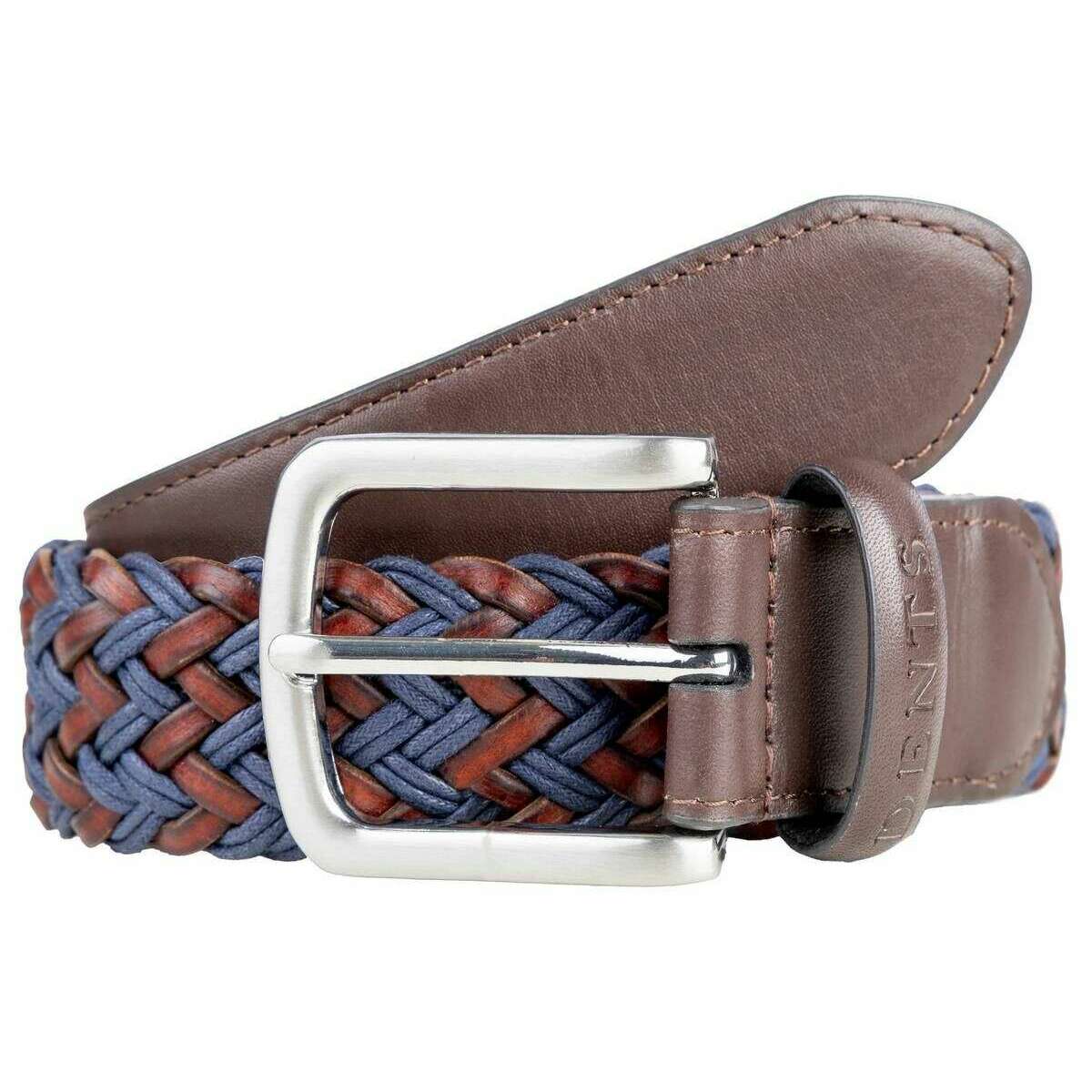 Deze herenriem van geweven leer en katoen is gemaakt van 100% leer, uitgevoerd in een blauwe kleur en is van het merk Dents. Alle riemen worden compleet geleverd met deuklabels. De Dents geweven leren en katoenen riem - Blauw is een ideale keuze als je een beetje stijlvolle flair aan je garderobe wilt toevoegen. De gevlochten structuur geeft het een prachtige totaallook die perfect bij je outfit past, zowel bij casual als formele gelegenheden. Deze riem heeft een enkele lederen houder, satijnnikkelkleurige fittingen en is ongevoerd.
