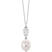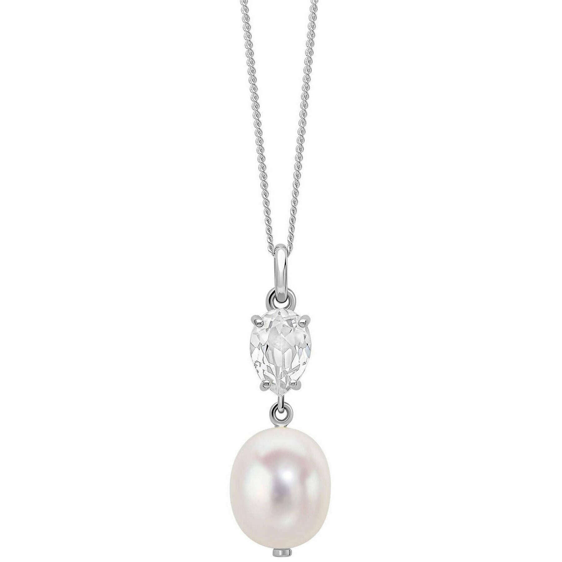 Elements Gold barokke parel en topaas 9kt gouden hanger - zilver/wit