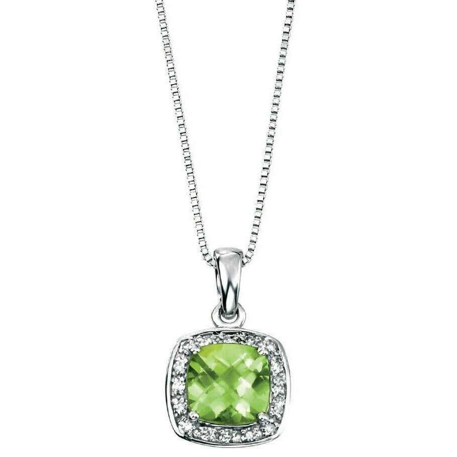 Elementen gouden kussen gesneden diamant omringd peridot hanger - zilver/groen