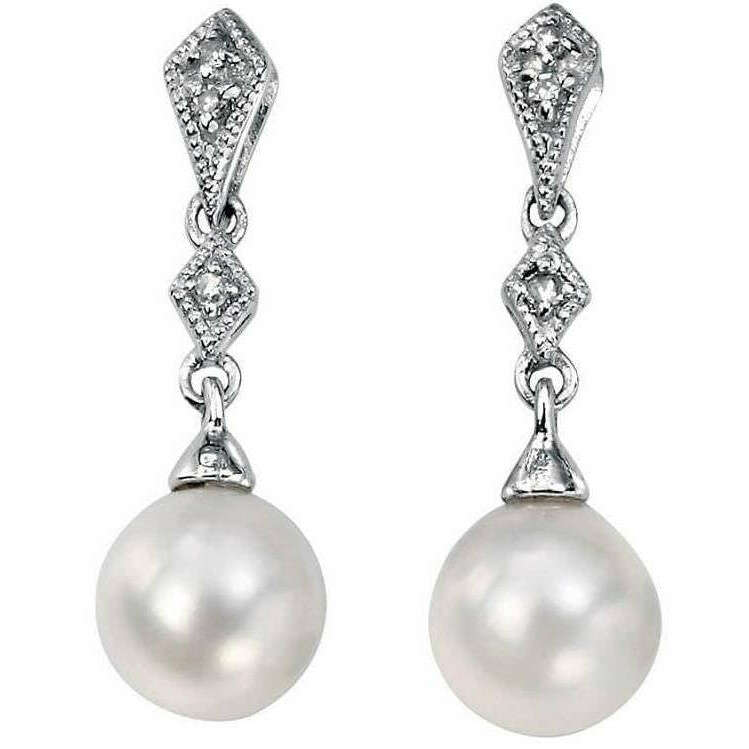 • 9ct witgoud, zoetwaterparel en 0,02ct diamant