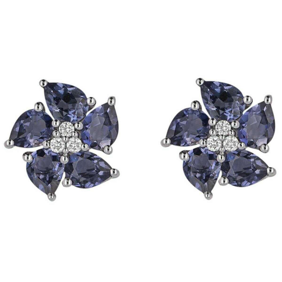 Elementen gouden ioliet pioenbloem en diamanten oorbellen - paars/zilver
