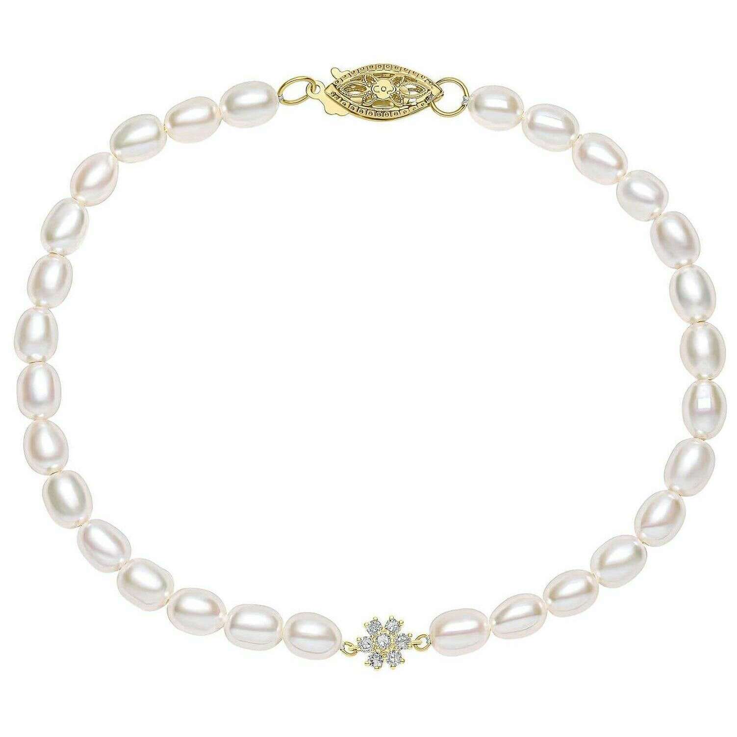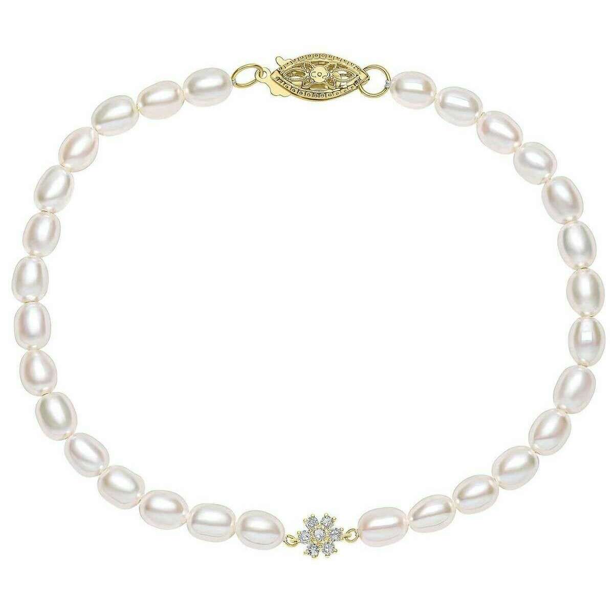 Elements Gold Seed Pearl en Flower 9ct gouden armband - goud/wit