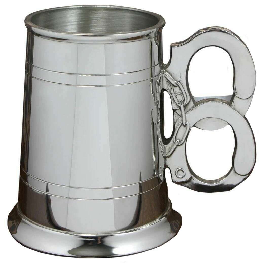 Engels tinbedrijf 1pt Handboeien Tankard - zilver