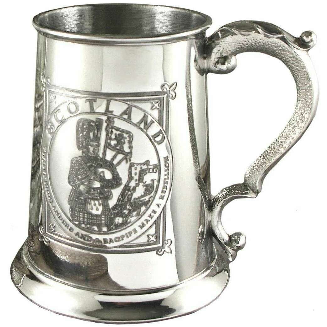 Engels Pewter Company 1pt Highland Piper Tankard - Silver