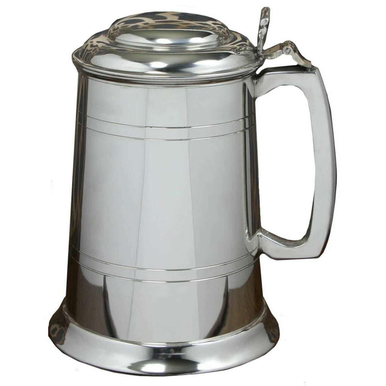Engels tinnen bedrijf 1pt rechte deksel tankard - zilver
