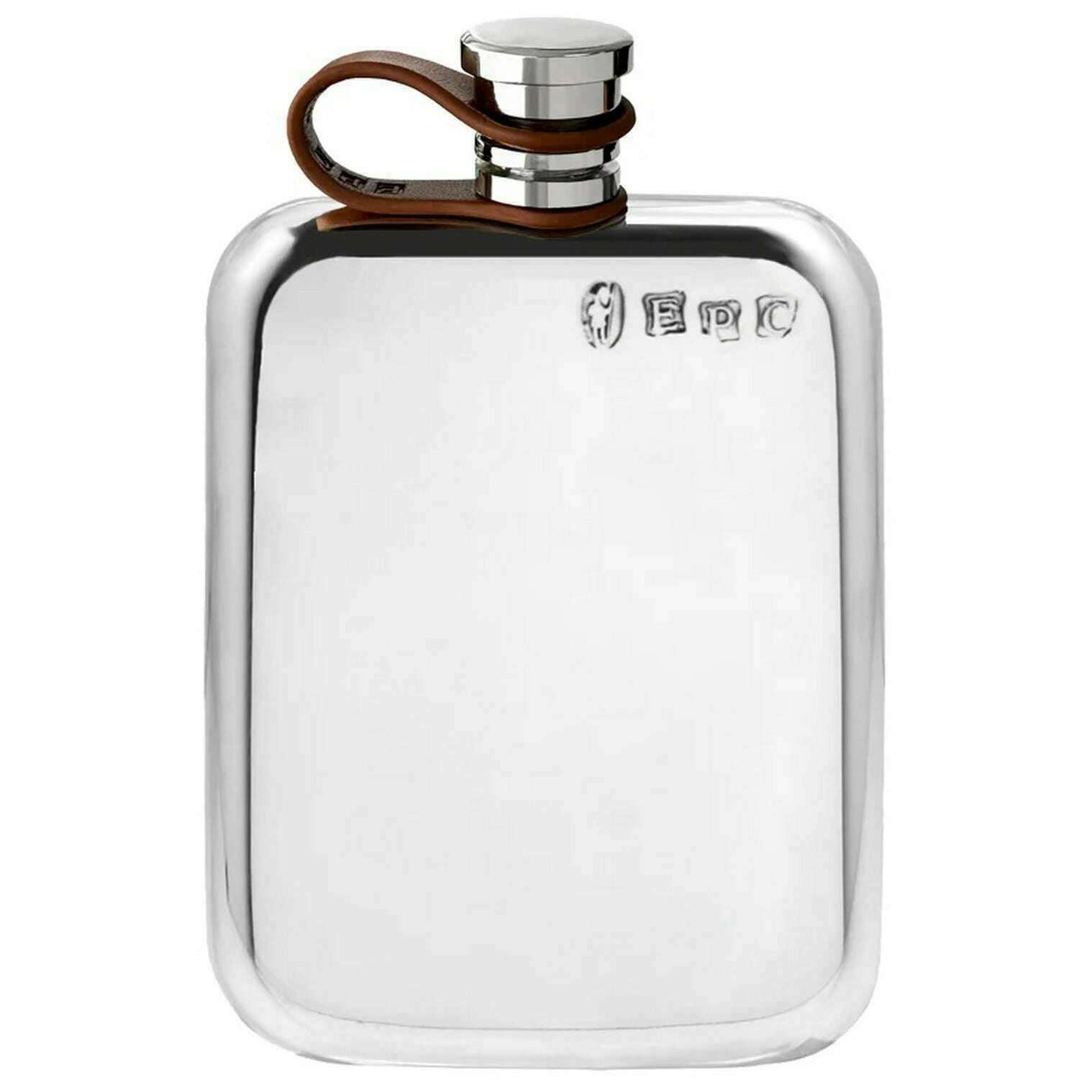 Engels tinnen bedrijf 4oz gewoon lederen flexi cap portemonnee kolf - zilver