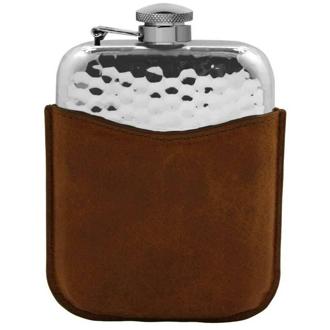 Engels tinnen bedrijf 6oz Captive Top Hammered Purse Purse Flask en zak - zilver/bruin