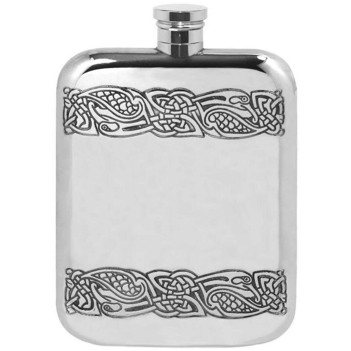 Engels tinbedrijf 6oz Celtic Purse Purse Flask - zilver