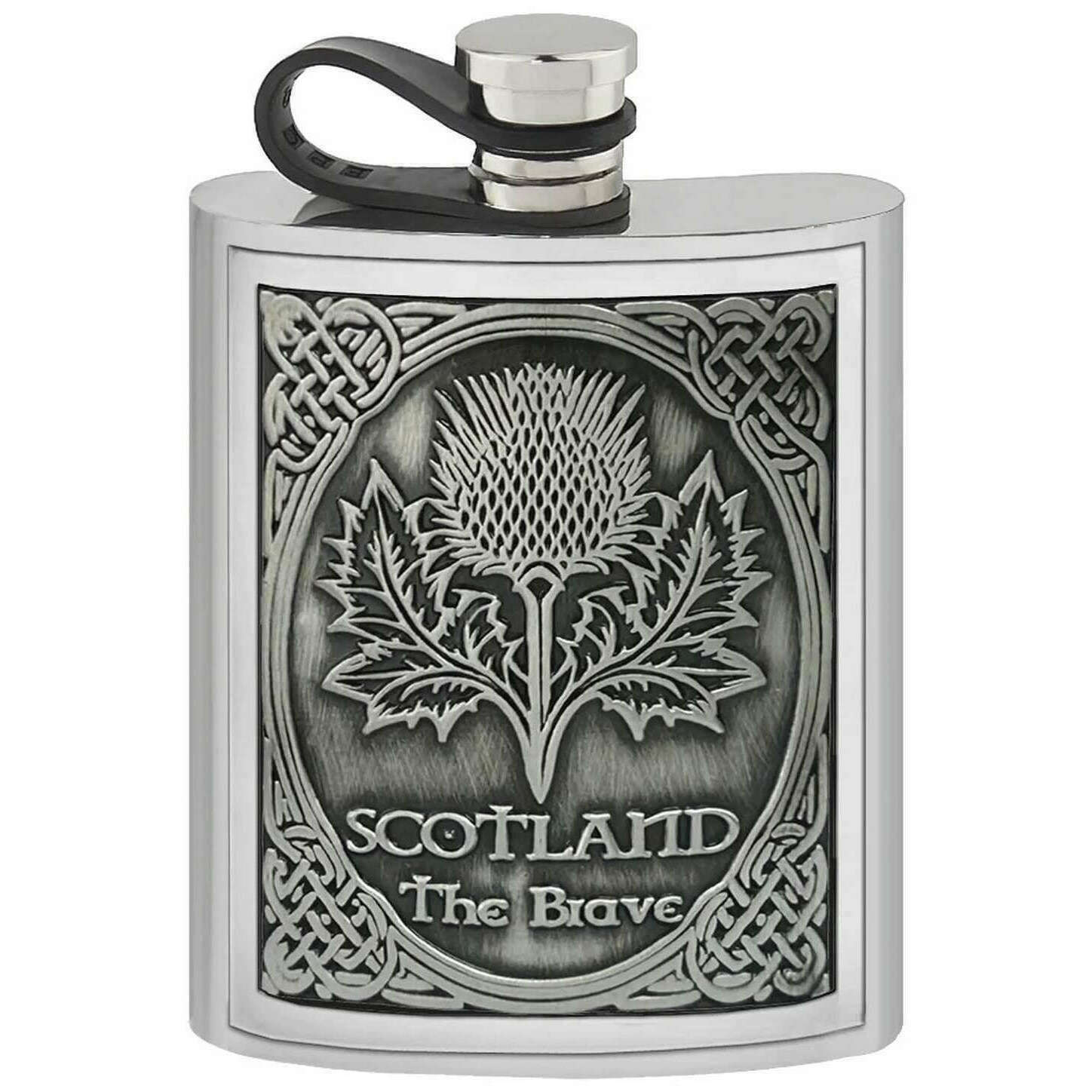 Engelse tinbedrijf 6oz reliëf distel tinnen kolf - zilver