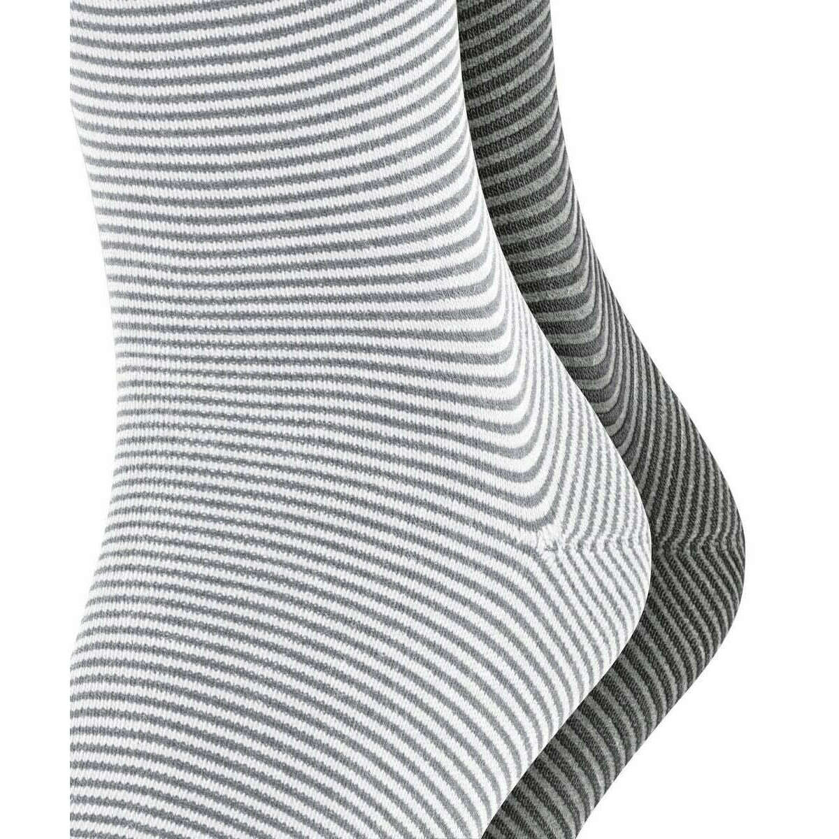 Esprit Allover Stripe 2 Pack Socks - White/Gray