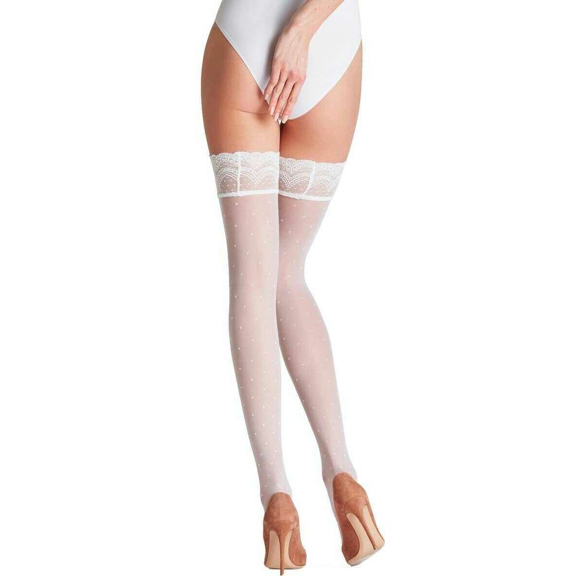 Perfect voor vrouwen zijn deze Falke White Dot 15 Denier Stay Ups, ze zijn ook gemaakt van 90% polyamide en 10% elastaan . Ook zijn de witte kousen ontworpen in een polka -puntpatroon, het wordt aanbevolen om op 30 graden te wassen om deze kousen in goede staat te houden. Alle kousen zijn compleet met Falke -verpakkingen. De Falke Dot 15 Denier Stay Ups - Wit geeft een onverslaanbaar hoog niveau van comfort dat u verdient. Met 15 ontkenninger uiterlijk en een hoogwaardig breiproces gaan deze verblijfs-ups perfect bij elke outfit en gelegenheid. De delicate kanten top met niet-slip siliconencoating zorgt ervoor dat deze verblijfs-ups de hele dag op hun plaats blijven. Stap in luxe verwennerij met Falke Perfect Fit. Deze transparante verblijfs -ups met moderne polka -stippen zijn het hoogtepunt dit seizoen!