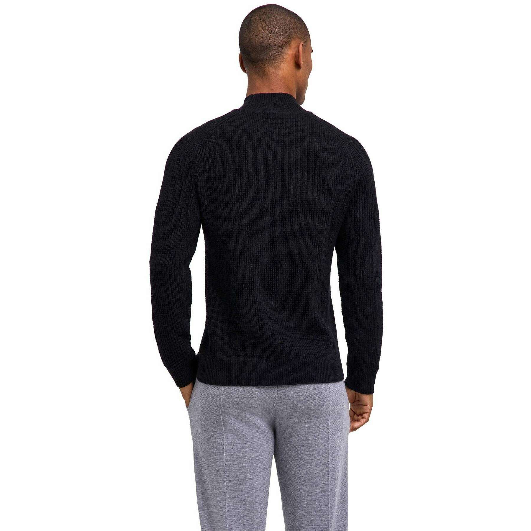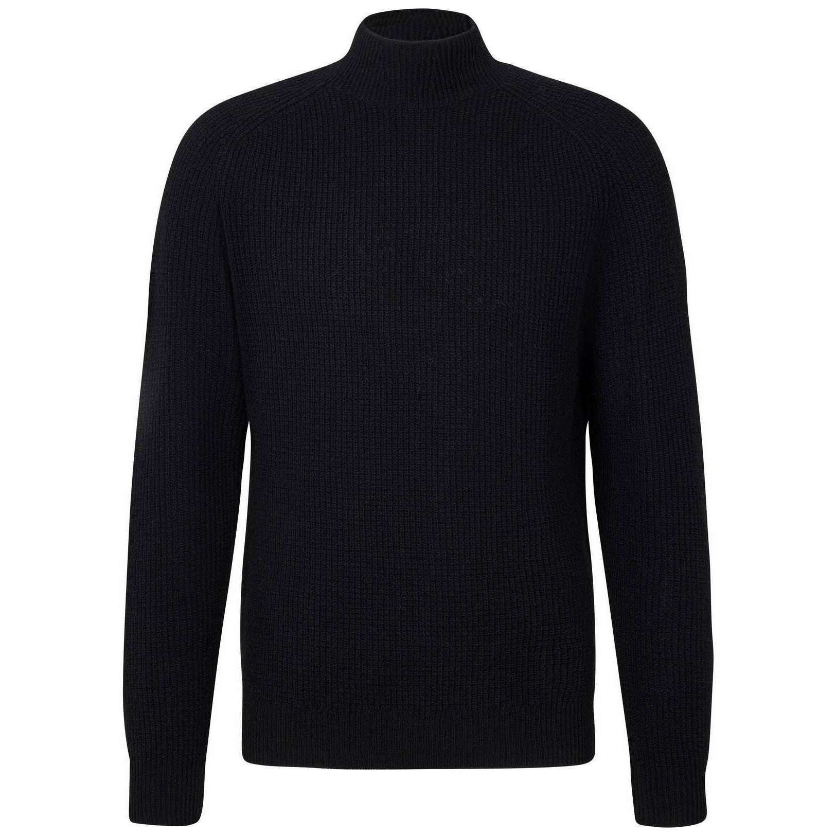 • Mock-kraag, averecht gebreid, milieubewust, normale pasvorm, zadelschouders, geribbelde manchetten en zoom, kraaltjestextuur, hoogwaardige 'Fully Fashioned'-verwerking