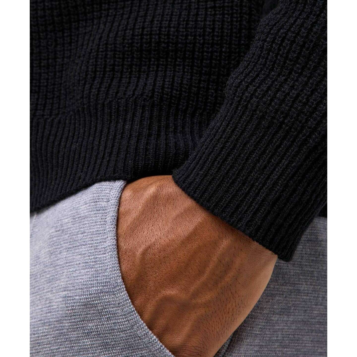 Maak kennis met deze geribde lamswollen trui met opstaande hals voor heren van Falke, gemaakt van 80% scheerwol en 20% gerecycled polyamide in een zwarte kleur. Ook de zwarte trui is ontworpen in een effen patroon. Het wordt aanbevolen om in de machine te wassen op 30 graden om deze trui in goede staat te houden. Alle truien worden compleet geleverd met een Falke-verpakking. De Falke geribbelde lamswollen trui met opstaande hals - Zwart zal uw wintergarderobe een tijdloze essential naar een hoger niveau tillen. Het klassieke ontwerp voegt een traditioneel tintje toe, terwijl de luxueuze lamswollen constructie zacht en knus aanvoelt, perfect om koude herfst- en winterdagen te trotseren. Stijlvolle zadelschouders, een nepkraag en geribde manchetten en zomen creëren een verfijnd silhouet, terwijl het premium milieubewuste, volledig ouderwetse vakmanschap jarenlang duurzame kwaliteit en comfort garandeert.
