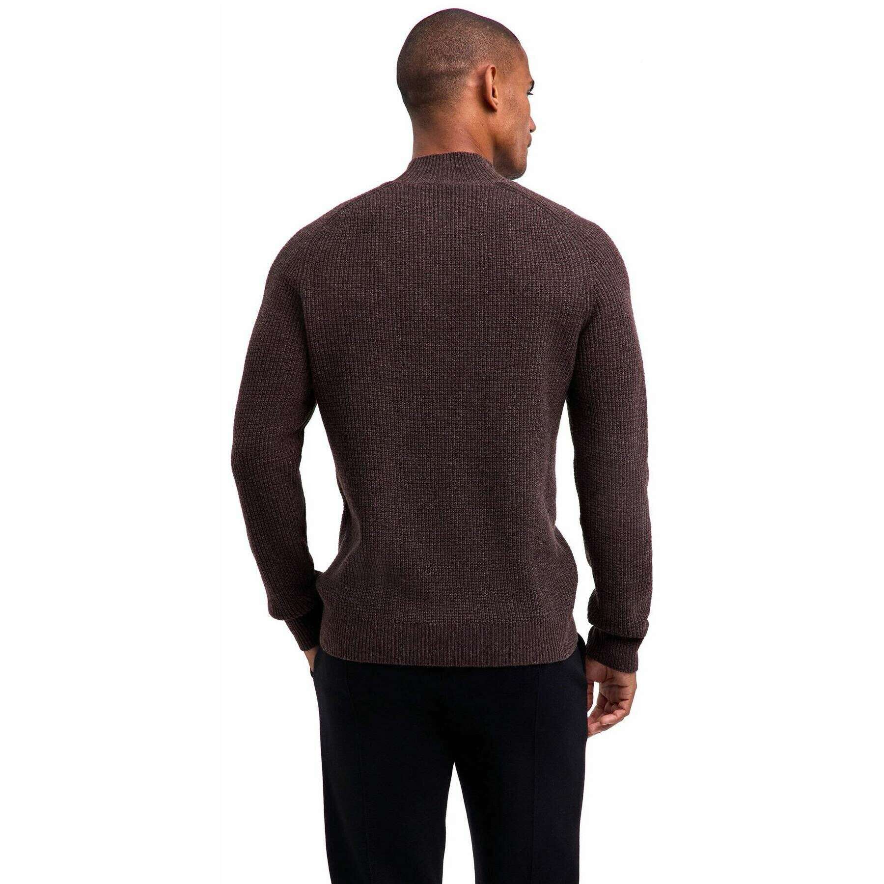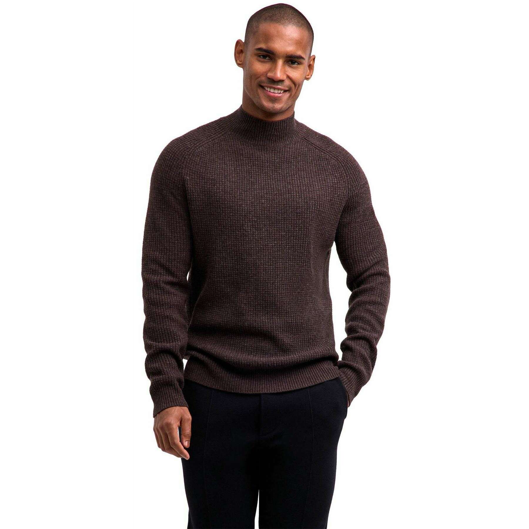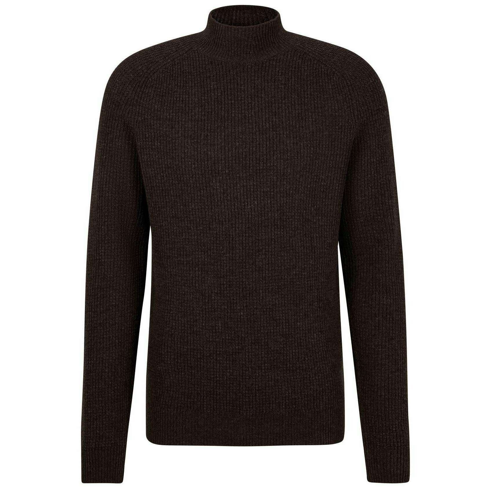 Falke geribde lamswollen trui met opstaande hals - Buckeye Brown Mel