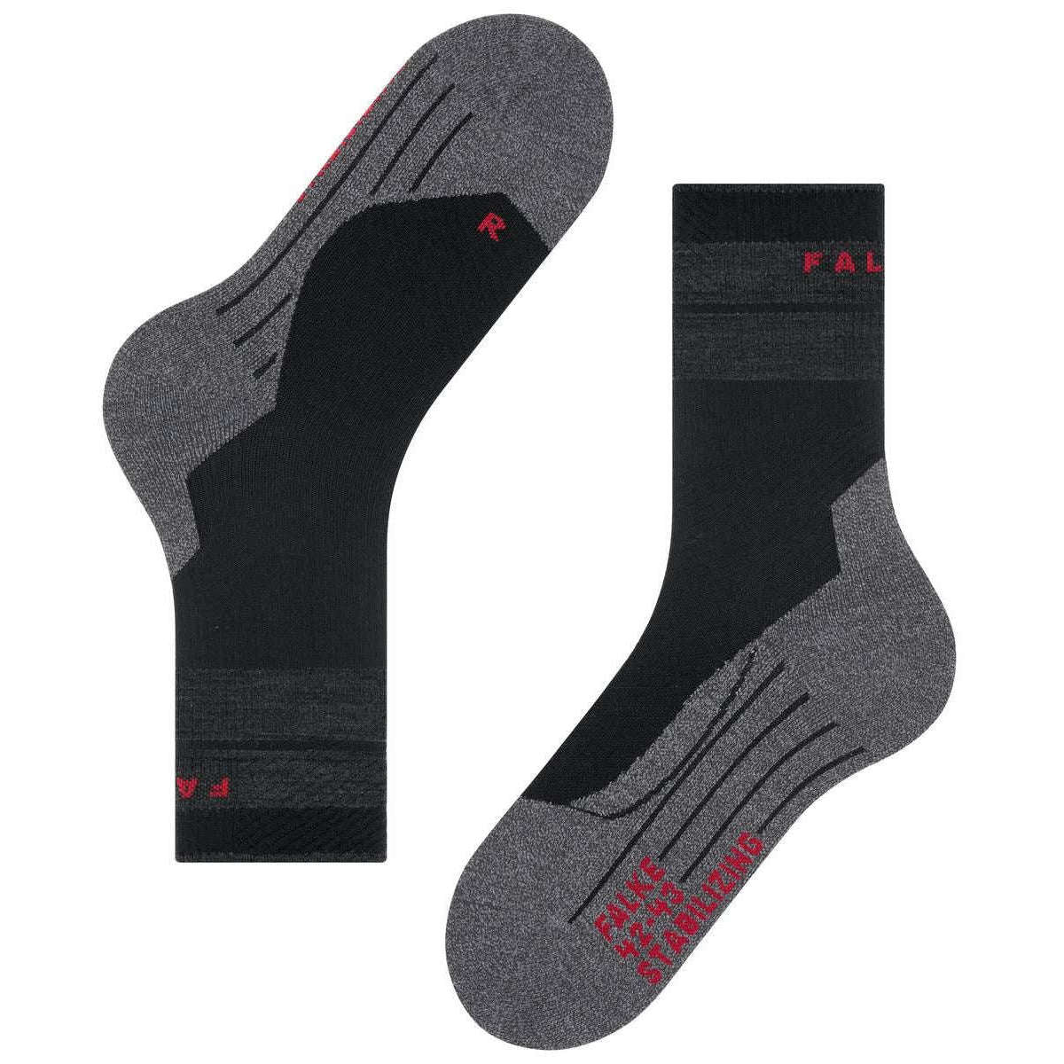 Met behulp van zwart 39% polypropyleen, 28% maagdelijke wol, 26% polyamide en 7% elastaan , deze TK -stabiliserende sokken van Falke zijn perfect voor vrouwen en een must. Ook de zwarte sokken zijn ontworpen in een gestreepte patroon, het wordt aanbevolen om op 30 graden te wassen om deze sokken in goede staat te houden. Alle sokken worden compleet geleverd met Falke Sock -tags. De Falke TK stabiliserende sokken - Zwart heeft een thermoregulerende merinowolmix met geurbestendige kwaliteiten waarmee u in de buitenlucht voor langer plezier kunt dragen. Compressiezones om de stabiliteit te vergroten en het risico op verstuikingen te verminderen. Deze sokken zijn ontworpen met vochtige 3-laags constructie om je voeten droog en blaarvrij te houden. Optimale pasvorm met teen en zoolgebied aangepast aan elke voet. Perfect voor wandelen op Light Mountain Terrain, deze sokken hebben een middelgevangene vulling voor het grootste comfort. Specifiek aangepast aan smallere voeten.