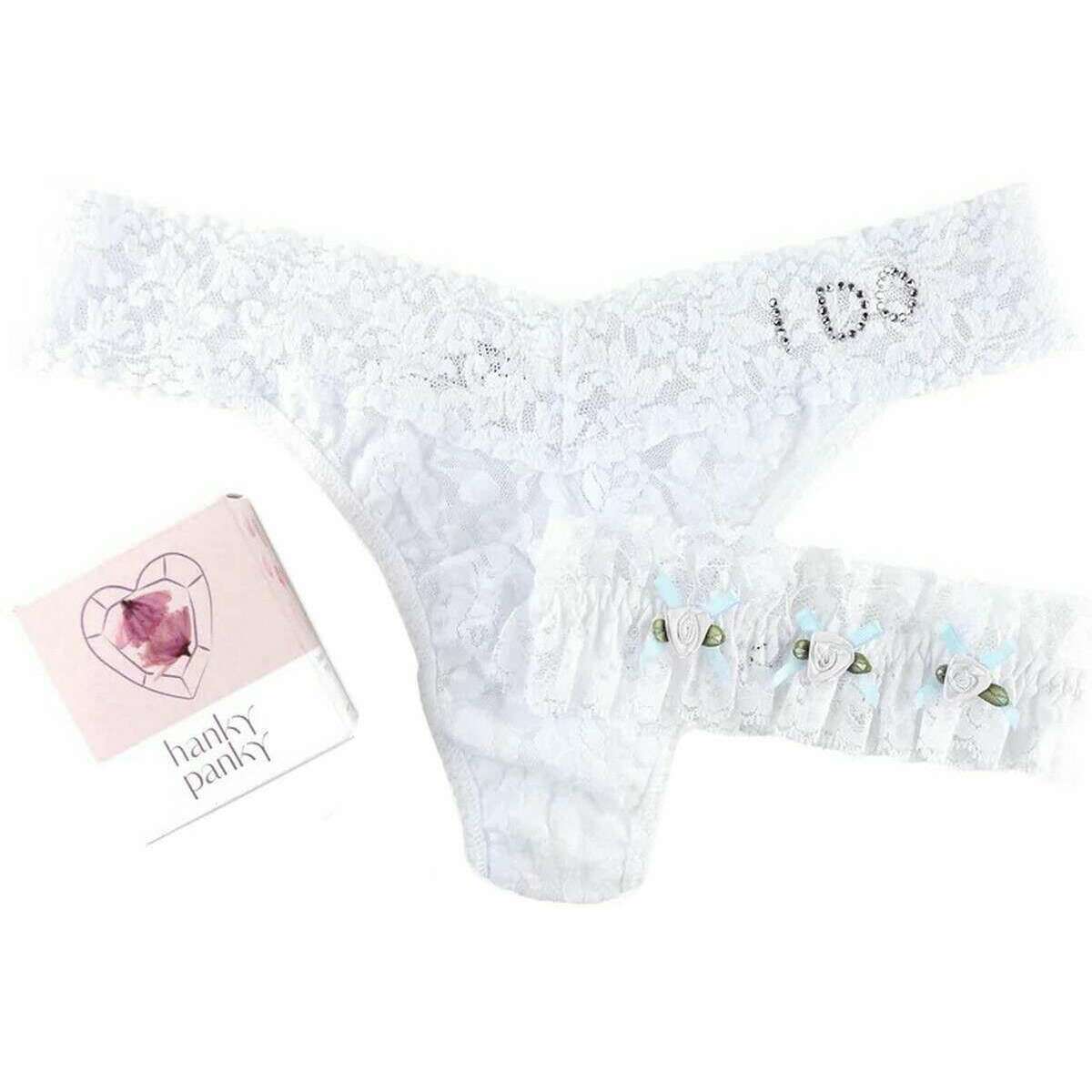 Hanky ​​panky ik doe lage rodel string en kousenbandset - glans wit