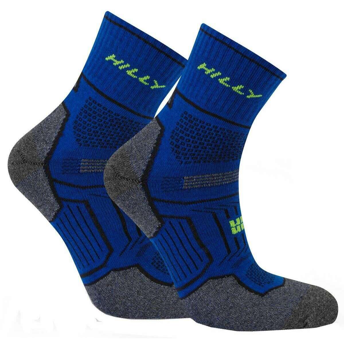 Deze unisex Twin Skin-enkelbandsokken zijn gemaakt van 50% polyamide (nylon), 22% polyester (Drirelease®), 21% polyamide (Q-Skin®), 4% katoen (Drirelease®) en 3% elastaan ​​(Lycra® sport), te zien in een blauwe kleur en zijn van het merkheuvel. Ook zijn de kobaltblauwe/grijze marsokken ontworpen in een blokpatroon, alle sokken worden compleet geleverd met heuvelachtige verpakkingen. De heuvelachtige dubbele huidschilders sokken - kobaltblauw/grijs mergel ideaal voor sport, hebben een Q -Skin® Micro Fiber Layer die vocht van binnenuit naar de buitenkant overbrengt om een ​​droge slijtage te garanderen die geen ongemak veroorzaakt en een Direlease® E.C.O. buitenste laag die is gemaakt van biologisch katoen met een geweldige droogsnelheid. De ademende geventileerde top zorgt ervoor dat je voeten niet oververhit raken en ongemak veroorzaken en de booggreep top, plat onder teen en y-vorm hiel voorkomt slippen en schuren. De Lycra® sportmateriaal en middelgrote demping zorgt voor een blijvend comfort, pasvorm, vorm en prestaties, zodat deze sokken zijn geweldige functies voor de komende jaren zullen behouden. Ze zijn de ultieme dubbele laag, anti-blister paar sokken, perfect voor elke hardloper.