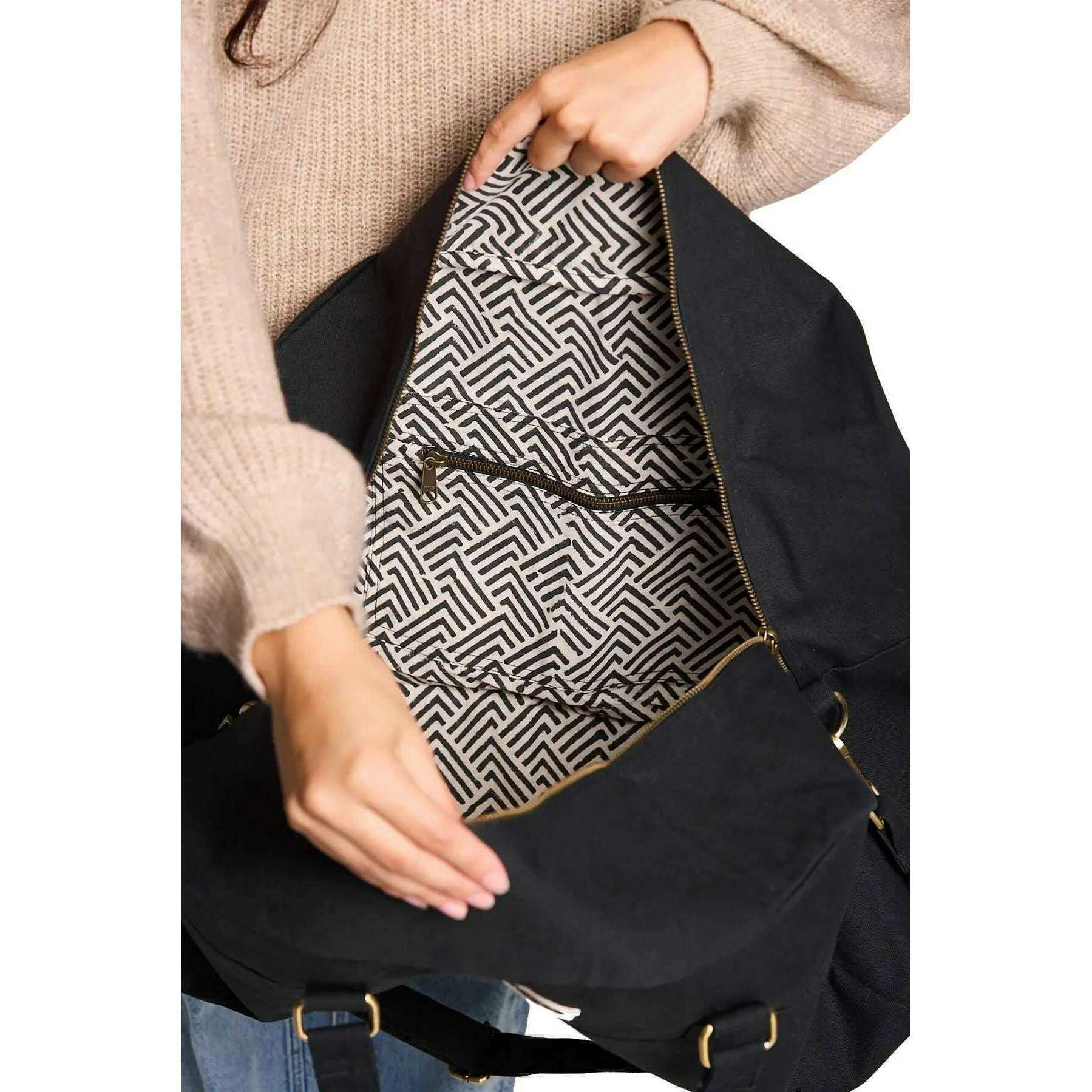 Deze unisex Yves grote reistas van het merk Hindbag is gemaakt van 100% biologisch katoen en wordt in het zwart tentoongesteld. Het meet 33 cm (hoogte) x 54 cm (breedte) x 24 cm (diepte). Alle tassen worden compleet geleverd met een achterpakket. De grote reistas van Hindbag Yves - Black is een ruime en milieuvriendelijke optie voor reizigers. Deze tas is gemaakt van dik, GOTS-gecertificeerd organisch katoen en beschikt over meerdere zakken voor organisatie, een veilige ritssluiting en een bedrukte binnenvoering die een vleugje elegantie toevoegt. Met zijn handgrepen en grote verstelbare schouderriem kan deze tas gemakkelijk met de hand of op de schouder worden gedragen.