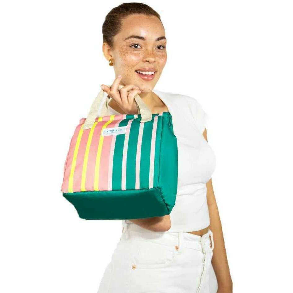 Vriendelijke tas London Lunch Bag - Bi -colour strepen oranje/groen