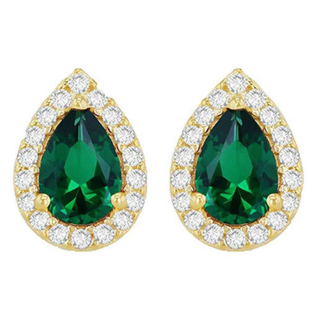 KJ Beckett Peervormige Halo Stud Oorbel - Geel Goud/Groen