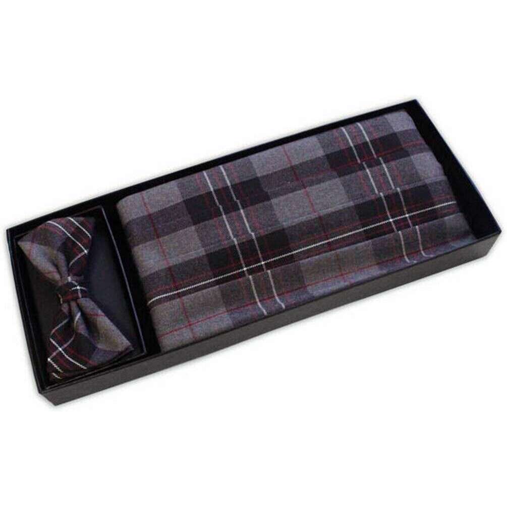 Knightsbridge Neckwear Tartan buikband en vlinderdasset - grijs