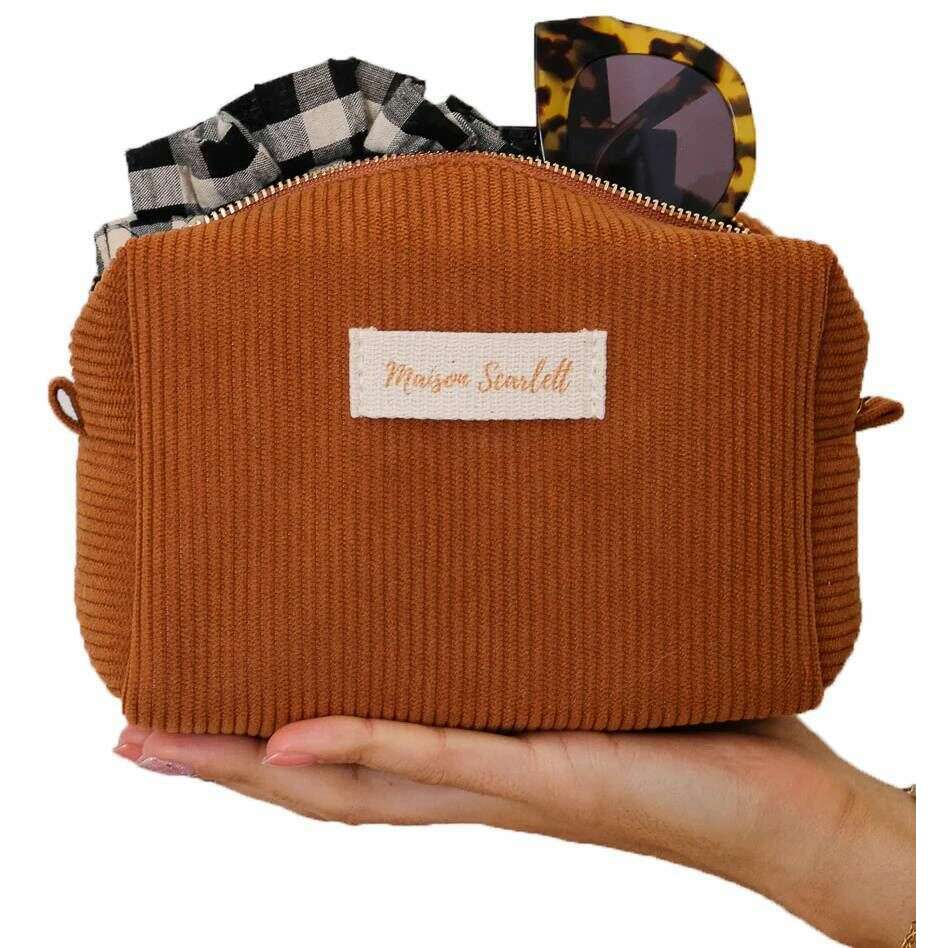 Maison Scarlett Charlotte Small Corduroy Toiletiekas - Cognac Brown