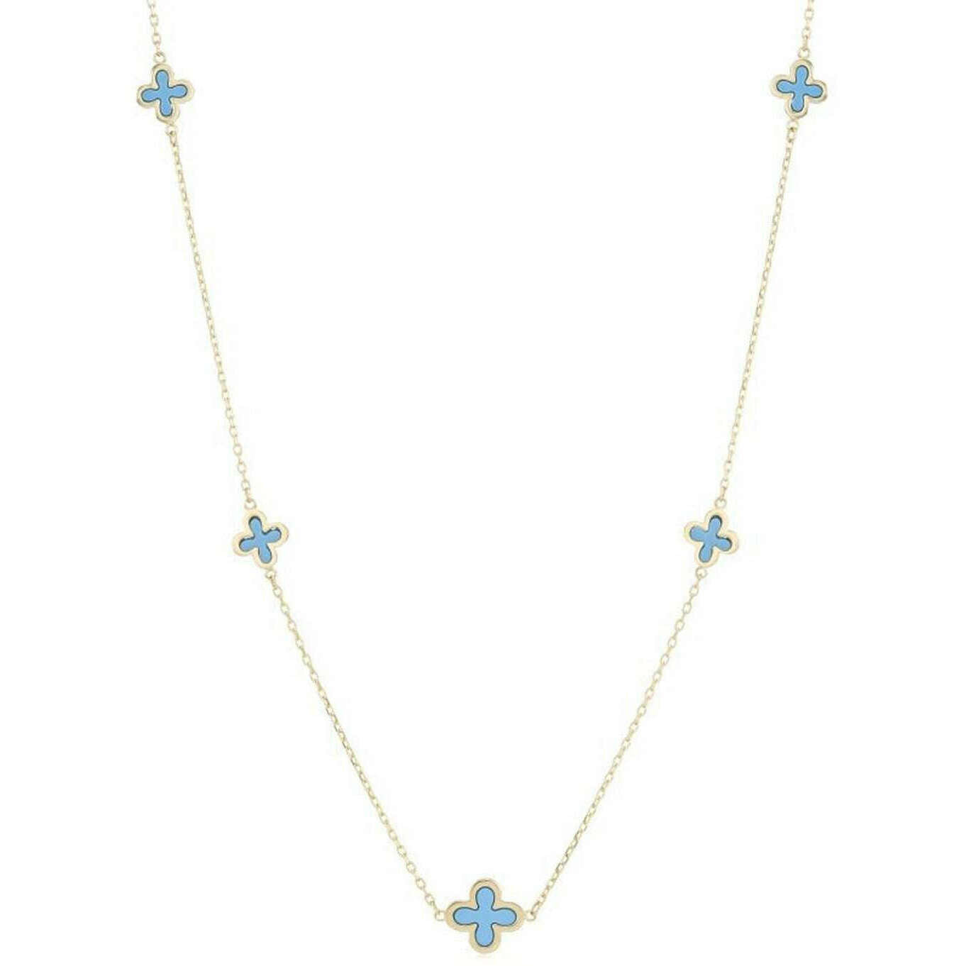 Mark Milton ketting met vijf bloemen - geel goud/turquoise blauw