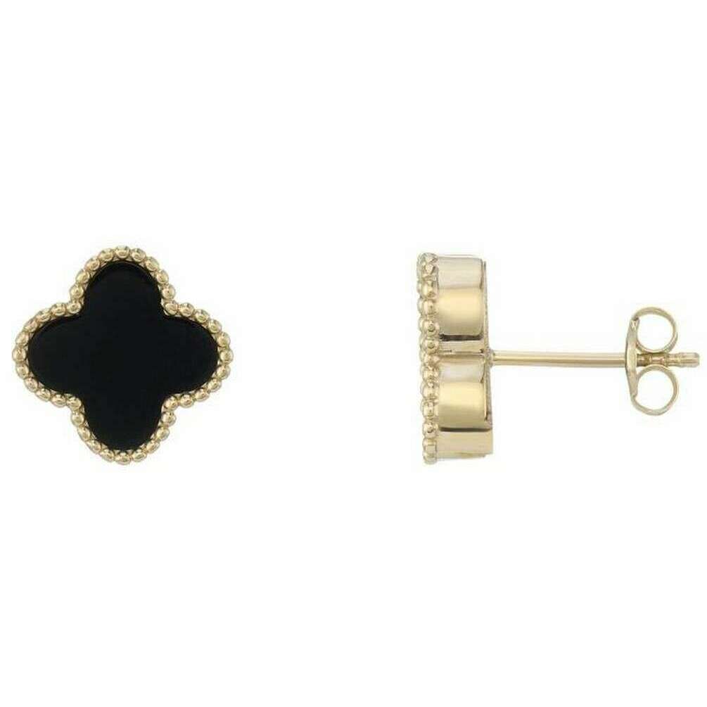 Mark Milton Onyx Bloem Oorbellen - Geel Goud/Zwart
