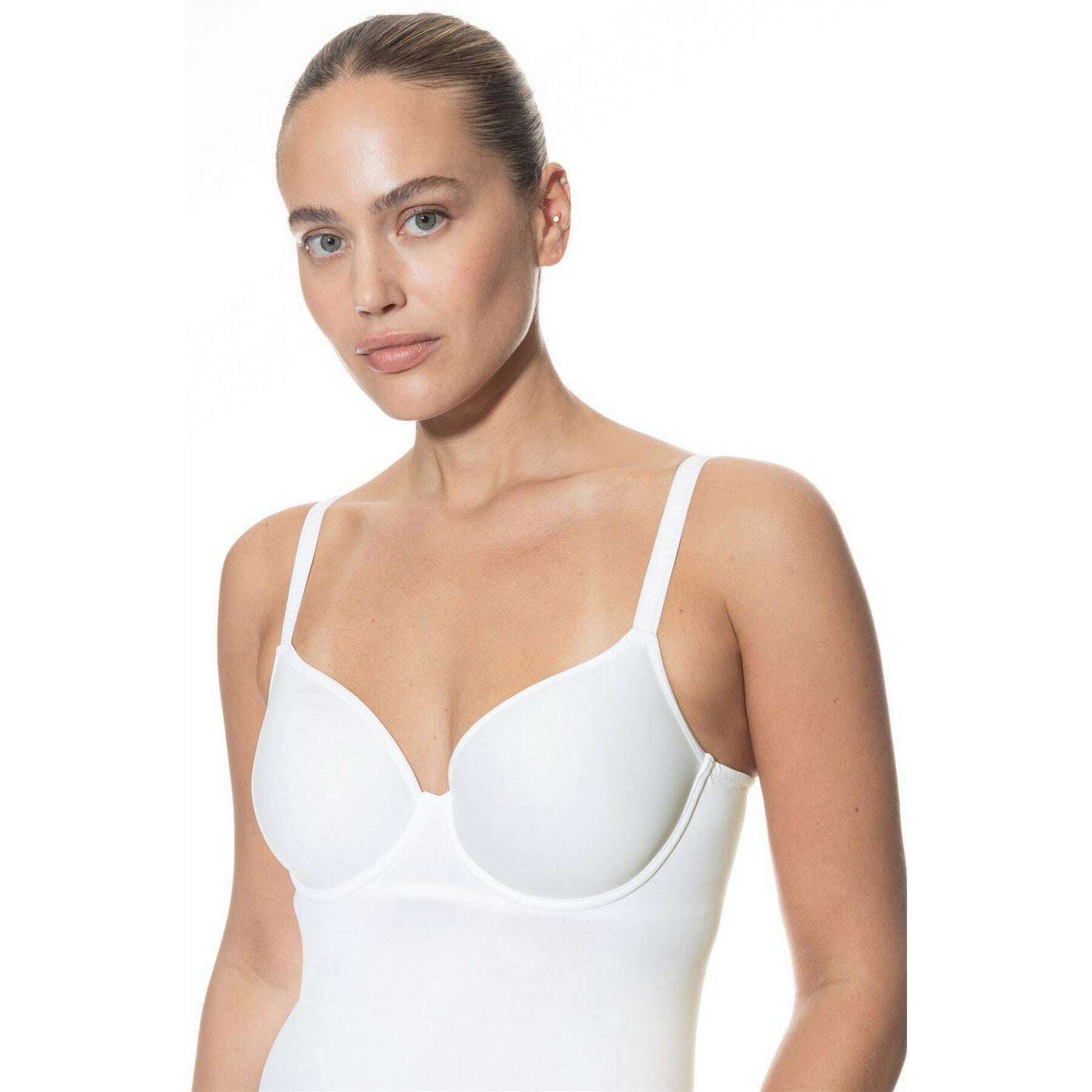 Door het gebruik van witte 50% viscose, 46% polyamide en 4% elastaan is deze joan bh-top van Mey perfect voor dames en een musthave. Ook het witte ondergoed is ontworpen in een effen patroon. Het wordt aanbevolen om met de hand te wassen om dit ondergoed in goede staat te houden. Al het ondergoed wordt compleet geleverd met een mey-verpakking. De Mey Joan BH Top - Wit is een basic die elke vrouw nodig heeft in haar collectie en die comfort en ondersteuning biedt. Met beugels voor subtiele ondersteuning en verstelbare bandjes voor aanpassing om de perfecte pasvorm te vinden. Deze bh-top is gemaakt van ademende, rekbare en superlichte materialen om het hoogste comfort te garanderen. Geweldig voor alle gelegenheden om op zichzelf te dragen onder je top voor een afslankende look.