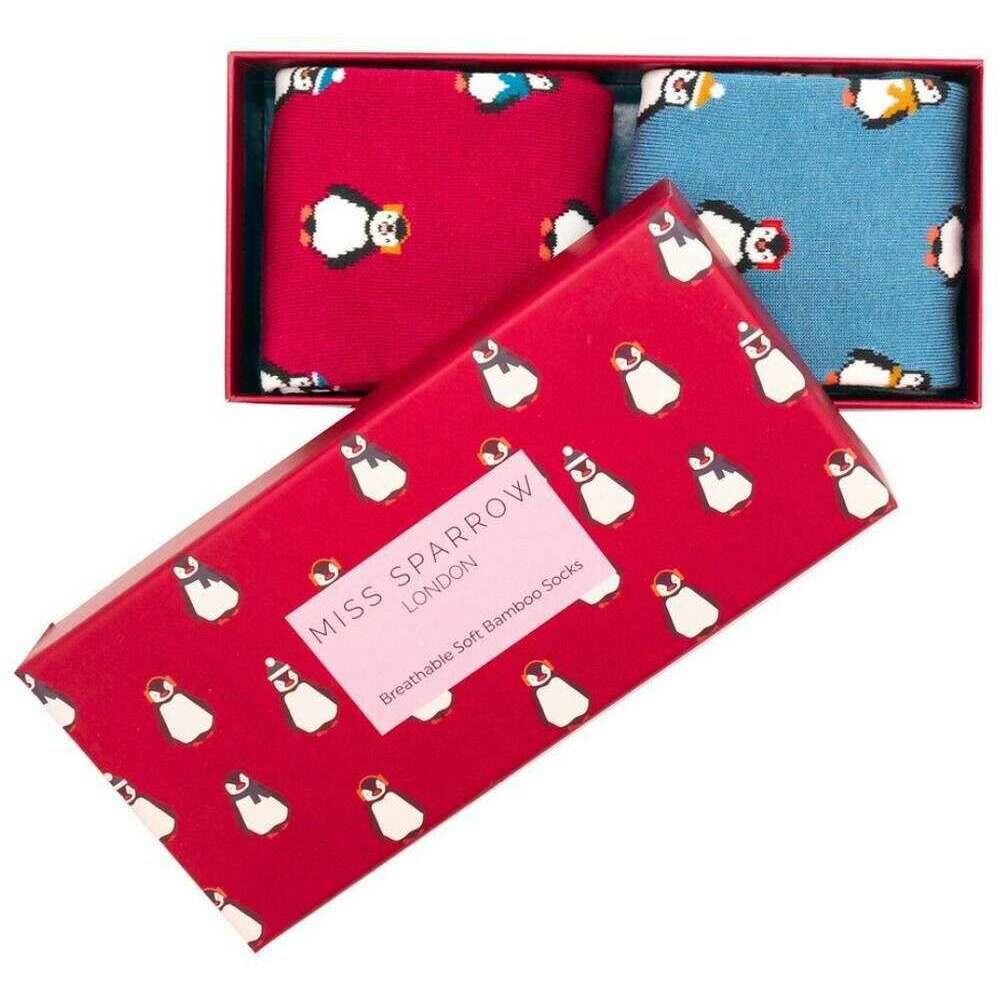 Miss Sparrow London 2-pack babypinguïns sokkendoos - rood/blauw