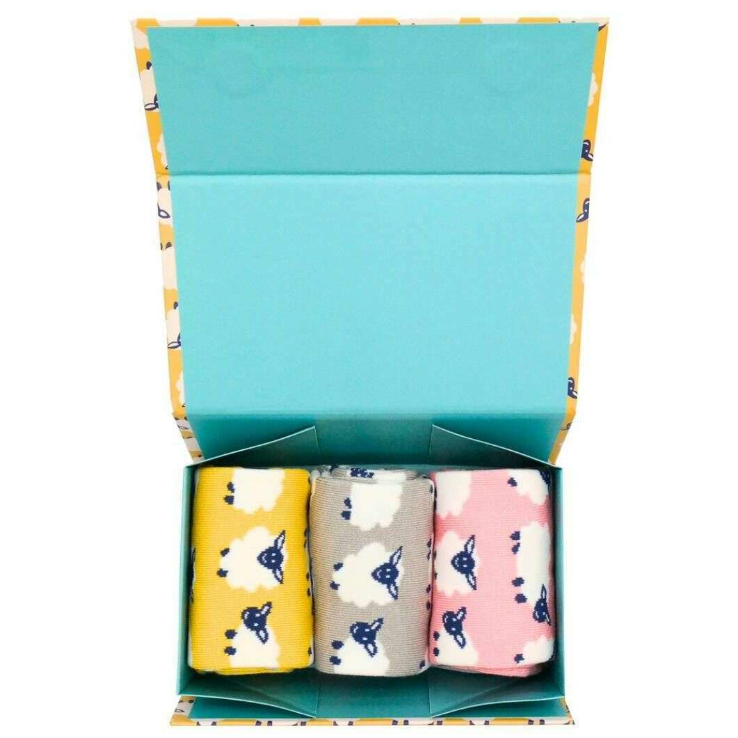 Miss Sparrow London 3 Pack Happy Sheep Sokkendoos - Geel/Grijs/Roze