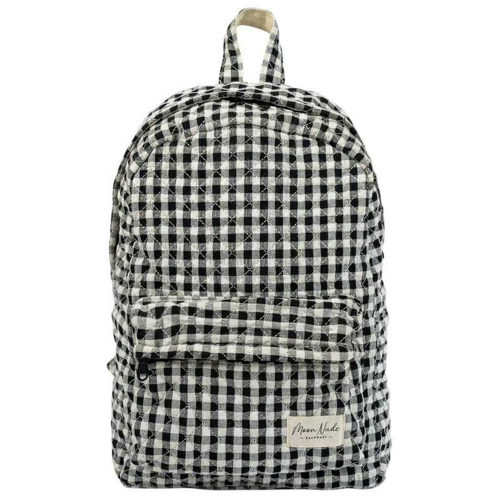 Deze zwart/witte klassieke damesrugzak van het merk Moon Nude is gemaakt van 100% katoen. De afmetingen zijn 40 cm (hoogte) x 28 cm (breedte) x 13 cm (diepte). Het wordt aanbevolen om met de hand te wassen in koud water met een mild wasmiddel, of binnenstebuiten machinaal te wassen op een delicate cyclus. om deze tas in goede staat te houden. Alle tassen worden compleet geleverd met een maannaaktverpakking. De Moon Nude Classic Backpack - Zwart/Wit heeft een prachtig handgemaakt gewatteerd ontwerp. Perfect voor onderweg, of het nu voor werk of dagelijks gebruik is. Deze tas heeft een buitenvak met ritssluiting, perfect voor al uw spullen. De binnenkant is ruim en biedt een achtervak ​​voor je laptop of tablet.