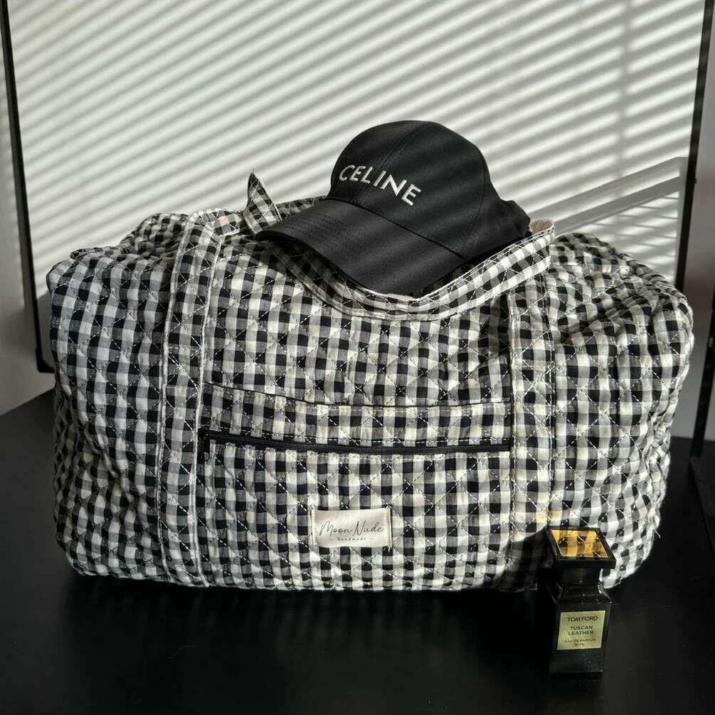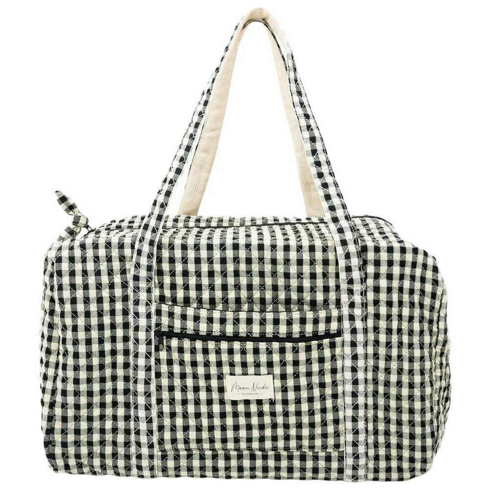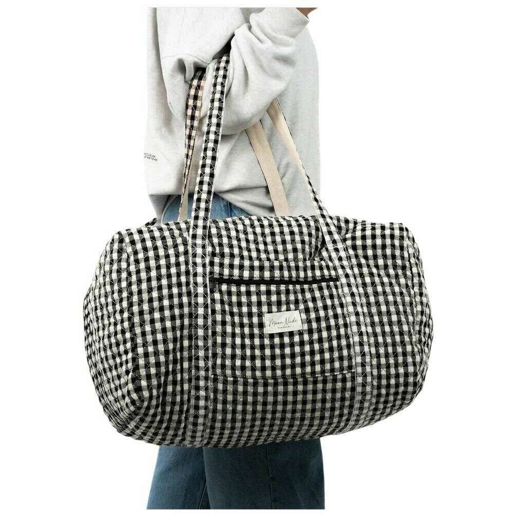 Deze klassieke grote plunjezak voor dames van het merk Moon Nude is gemaakt van 100% katoen en is uitgevoerd in het zwart. De afmetingen zijn 30 cm (hoogte) x 50 cm (breedte) x 28 cm (diepte). Het wordt aanbevolen om met de hand te wassen in koud water met een mild wasmiddel, of binnenstebuiten machinaal te wassen op een delicate cyclus. om deze tas in goede staat te houden. Alle tassen worden compleet geleverd met een maannaaktverpakking. De Moon Nude Classic Large Duffel Bag - Zwart/Wit heeft een prachtig handgemaakt gewatteerd ontwerp. Deze tas heeft een buitenvak met ritssluiting, een ruim interieur en twee grote handvatten, perfect voor een weekendje weg of het meenemen van veel spullen.
