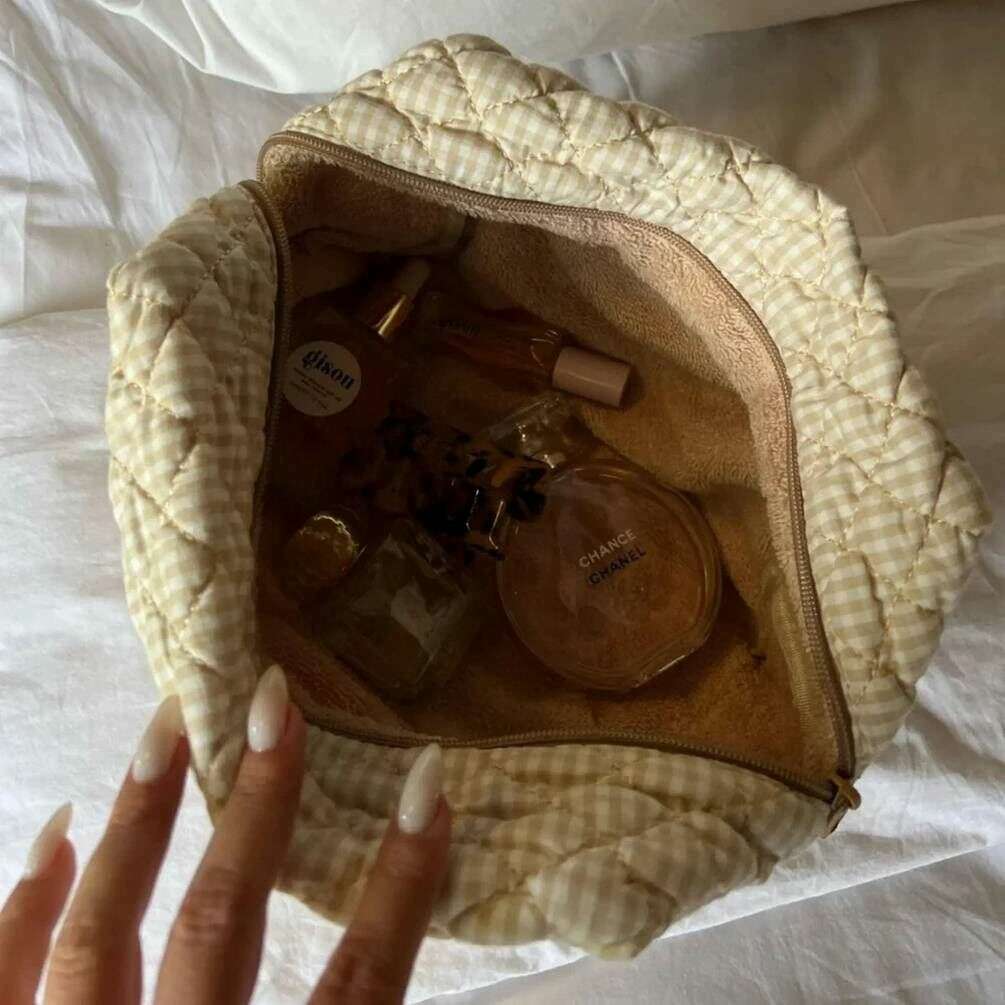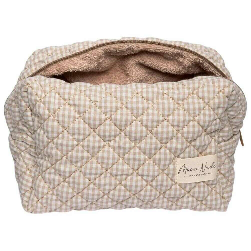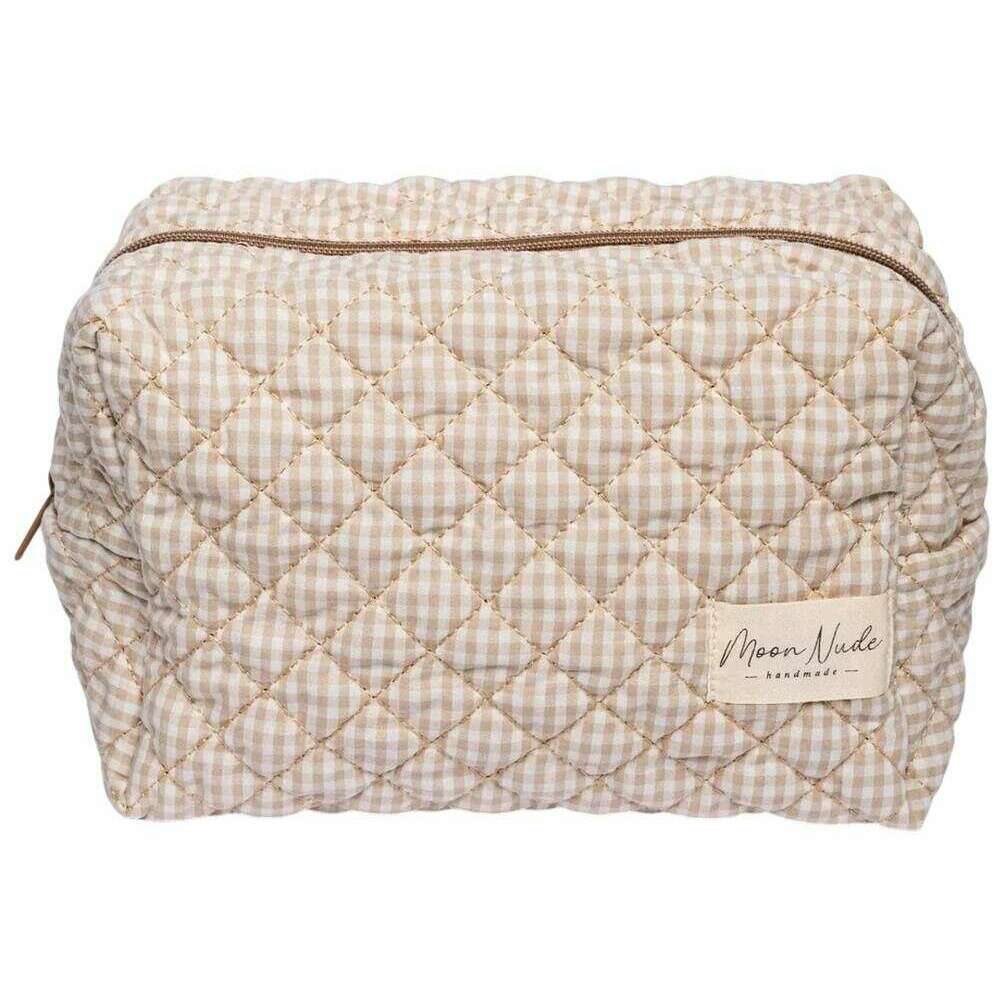 Perfect voor dames is dit Moon Nude crème/beige grote make-up tasje, tevens is hij gemaakt van 100% katoen. De afmetingen zijn 15 cm (hoogte) x 25 cm (breedte) x 15 cm (diepte). Het wordt aanbevolen om met de hand te wassen in koud water met een mild wasmiddel, of binnenstebuiten machinaal te wassen op een delicate cyclus. om deze tas in goede staat te houden. Alle tassen worden compleet geleverd met een maannaaktverpakking. De Moon Nude Large Makeup Bag - Crème/Beige is een absolute noodzaak voor je kamer of dagelijkse tas. Deze make-uptas houdt gegarandeerd al je meest gebruikte producten bij elkaar en veilig, terwijl hij ook stijlvol en chic is met zijn handgemaakte gewatteerde ontwerp.