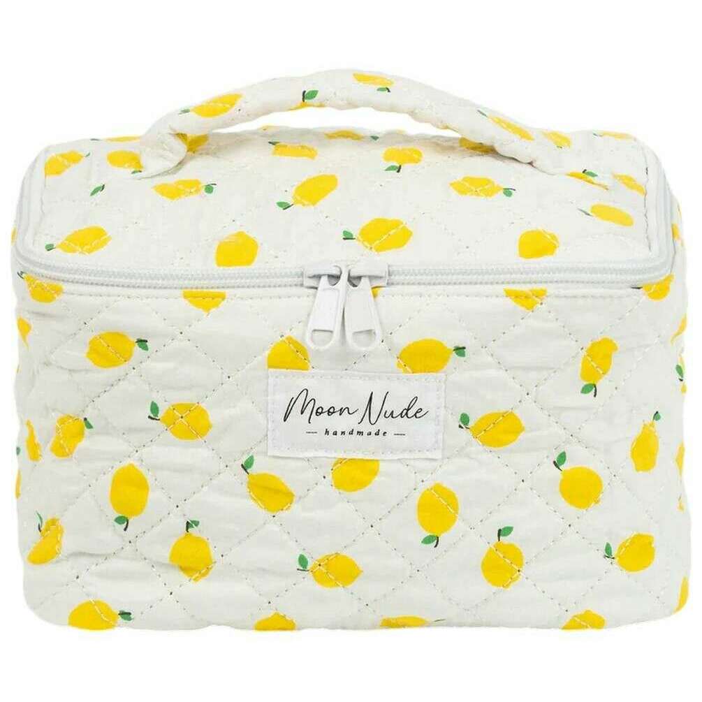 Deze dames limonade make-uptas van het merk Moon Nude is gemaakt van 100% katoen en is uitgevoerd in het wit. De afmetingen zijn 16 cm (hoogte) x 22 cm (breedte) x 14 cm (diepte). Het wordt aanbevolen om met de hand te wassen in koud water met een mild wasmiddel, of binnenstebuiten machinaal te wassen op een delicate cyclus. om deze tas in goede staat te houden. Alle tassen worden compleet geleverd met een maannaaktverpakking. De Moon Nude Lemonade Vanity Bag - Wit/Geel is een absolute noodzaak voor op reis of voor dagelijks gebruik. Deze make-uptas bewaart gegarandeerd al je make-up of huidverzorging op één plek, terwijl hij ook stijlvol en modieus is met zijn handgemaakte gewatteerde ontwerp.