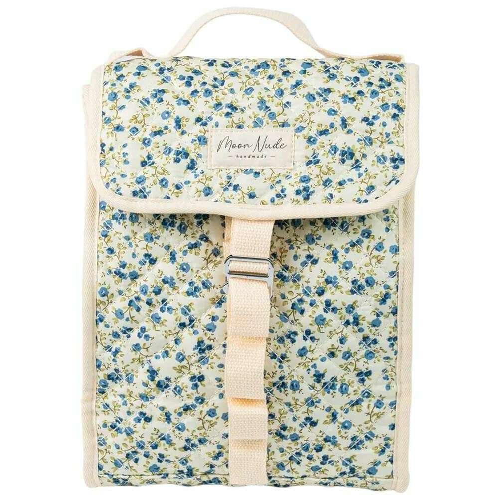Deze voorjaarslunchtas voor dames is gemaakt van 100% katoen, uitgevoerd in een blauwe kleur en is van het merk Moon Nude. De afmetingen zijn 28 cm (hoogte) x 22,5 cm (breedte) x 17,5 cm (diepte). Het wordt aanbevolen om met de hand te wassen in koud water met een mild wasmiddel, of binnenstebuiten machinaal te wassen op een delicate cyclus. om deze tas in goede staat te houden. Alle tassen worden compleet geleverd met een maannaaktverpakking. De Moon Nude Spring Lunch Bag - Blauw/Groen is een musthave voor op reis naar het werk of voor de lunch voor kinderen. Deze lunchtas heeft een geïsoleerde binnenkant, zodat je warme spullen warm en je koude spullen koud blijven! Deze tas heeft ook een prachtig handgemaakt gewatteerd ontwerp, dat zeker de aandacht zal trekken van iedereen die je kent.