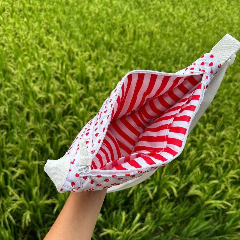 Perfect voor dames is deze Moon Nude wit/rode valentijn mini schoudertas, tevens is hij gemaakt van 100% katoen. De afmetingen zijn 17 cm (hoogte) x 28 cm (breedte) x 10 cm (diepte). Het wordt aanbevolen om met de hand te wassen in koud water met een mild wasmiddel, of binnenstebuiten machinaal te wassen op een delicate cyclus. om deze tas in goede staat te houden. Alle tassen worden compleet geleverd met een maannaaktverpakking. De Moon Nude Valentine Mini Schoudertas - Wit/Rood heeft een prachtig handgemaakt gewatteerd ontwerp. Perfect voor onderweg, of het nu voor een speciale gelegenheid is of voor dagelijks gebruik. Deze schoudertas heeft een ritssluiting voor de veiligheid, een verstelbare riem voor comfort en binnenvakken voor gemak.