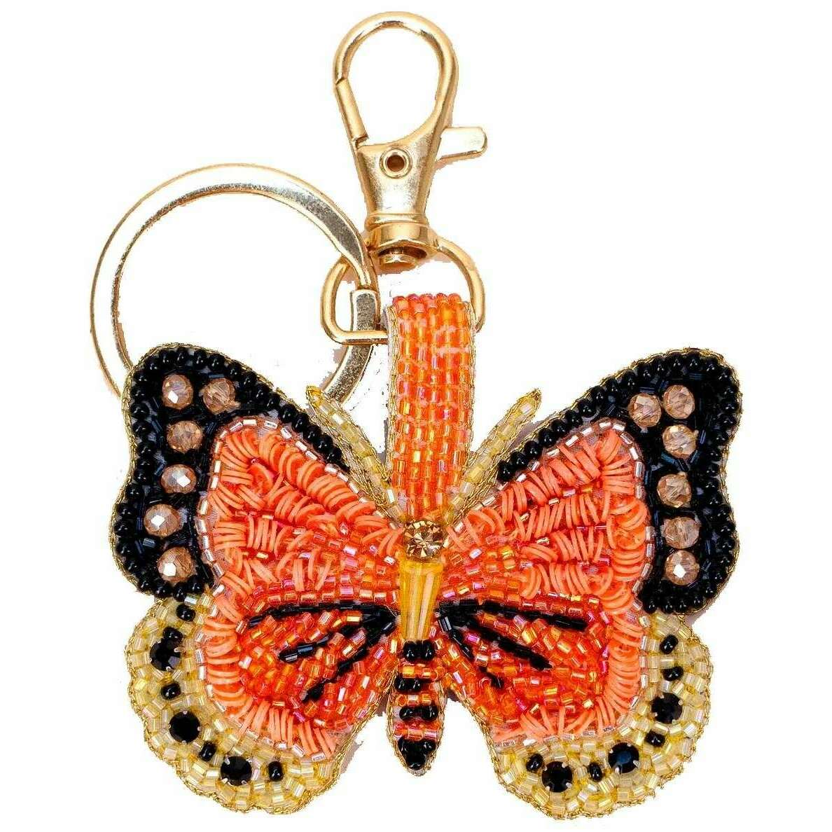 Poederkleurige Bonny Butterfly-sleutelhanger met kralen - Crème/Oranje/Zwart