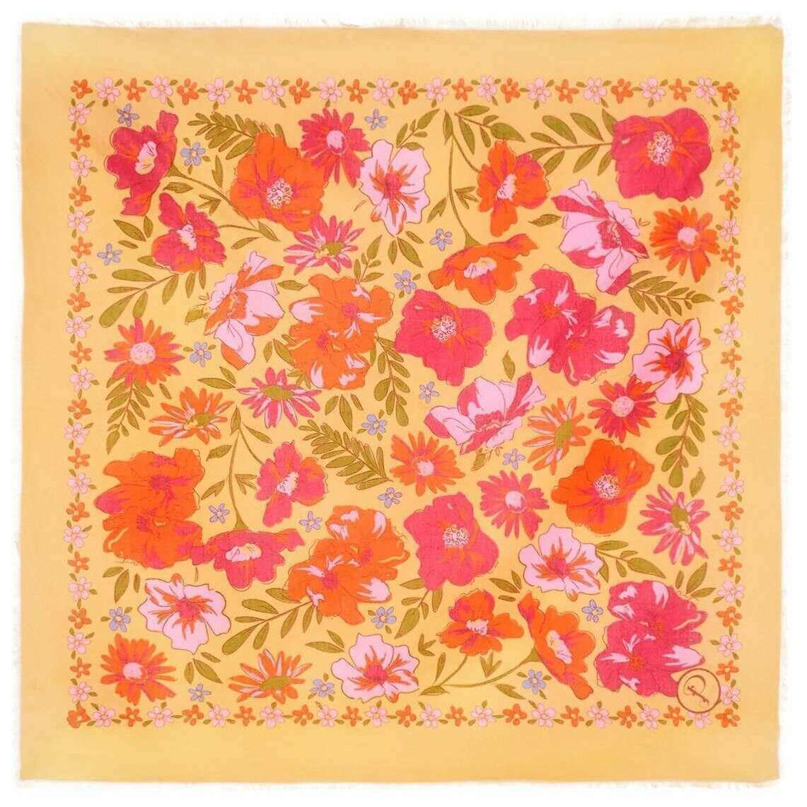 Poeder katoen geschetste bloemenbandana - mosterd geel