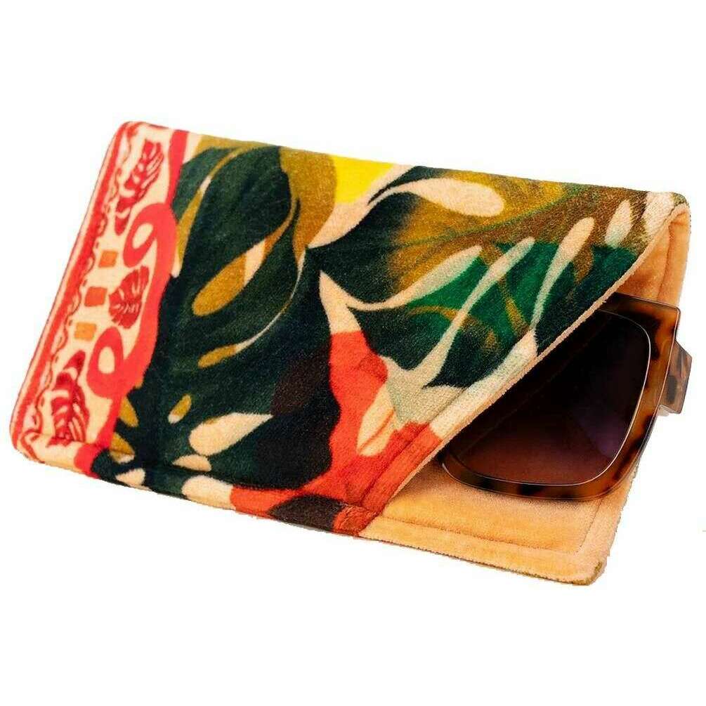 Poeder exotische bladeren fluwelen zonnebriletui - beige/rood/groen