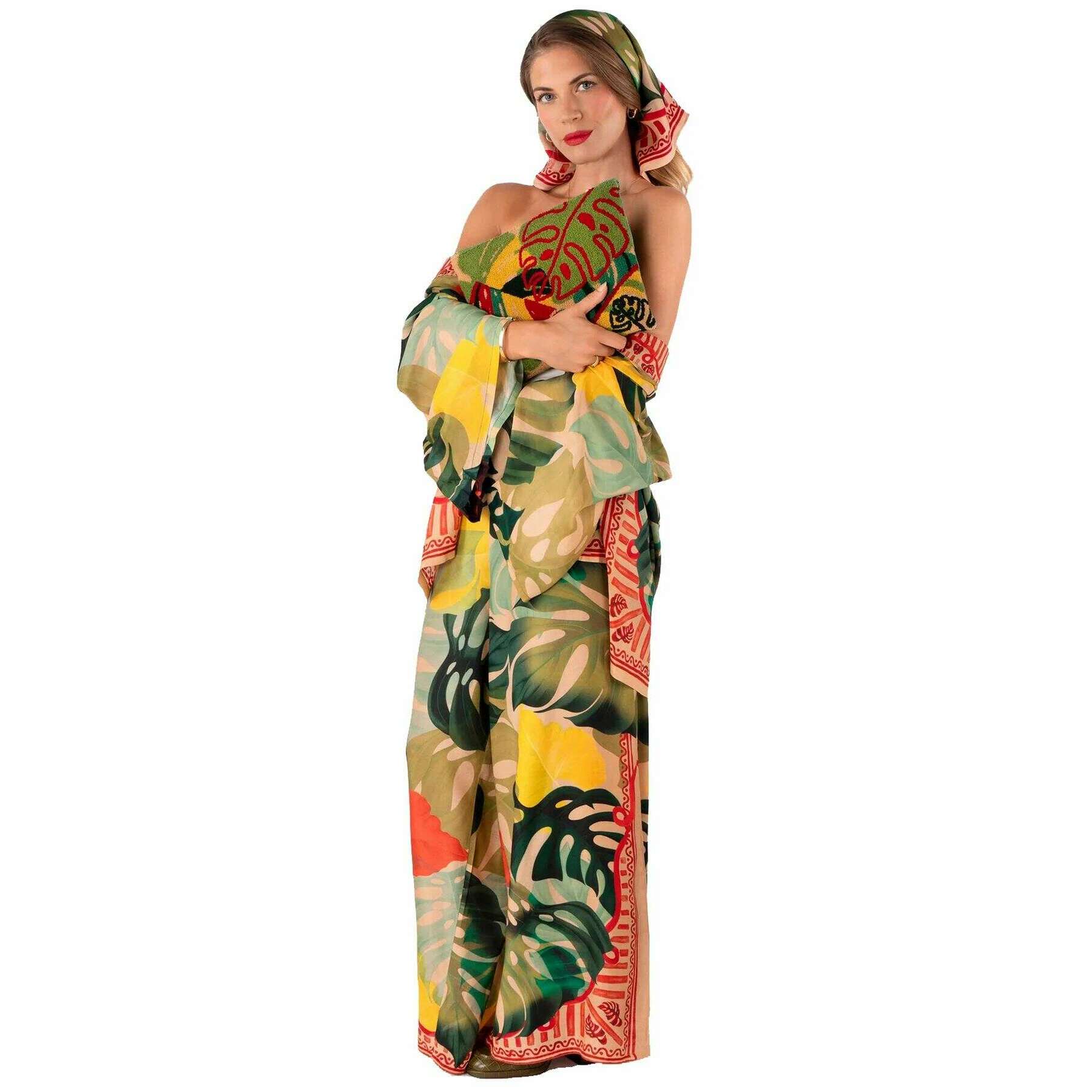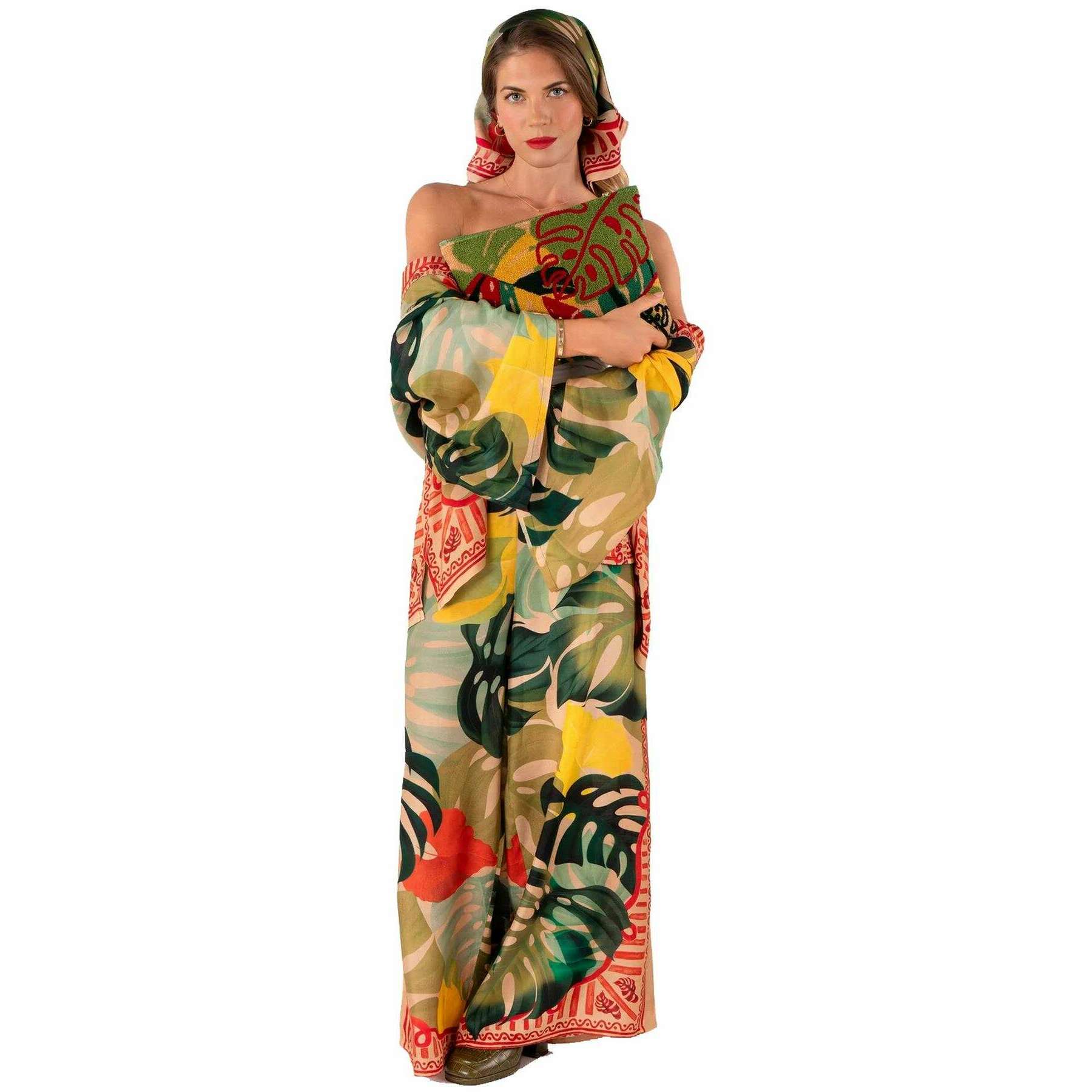 Poeder exotische bladeren wollen etui - rood/groen/beige