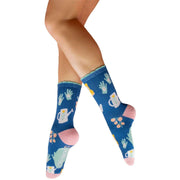 Deze goed gemaakte dames-enkelsokken voor dames van Powder zijn verkrijgbaar in de kleur blauw/roze/geel en zijn gemaakt van 65% bamboe, 15% katoen, 10% nylon en 10% elastaan. Ook de blauw/roze/gele sokken zijn ontworpen in een uniek patroon. Het wordt aanbevolen om op 30 graden te wassen om deze sokken in goede staat te houden. Alle sokken worden compleet geleverd met poedersokkenlabels. De Powder Gone Gardening Enkelsokken - Blauw/Roze/Geel hebben een leuk, speels ontwerp dat een vrolijke aanvulling zal zijn op al je outfits. Deze sokken zijn gemaakt van bamboe en zijn ongelooflijk comfortabel en duurzaam. De rijke kleuren en speelse achtergrond zorgen ervoor dat deze sokken opvallen. Perfect als cadeau, deze blauwe en roze sokken zijn ideaal voor een zomerse outfit.