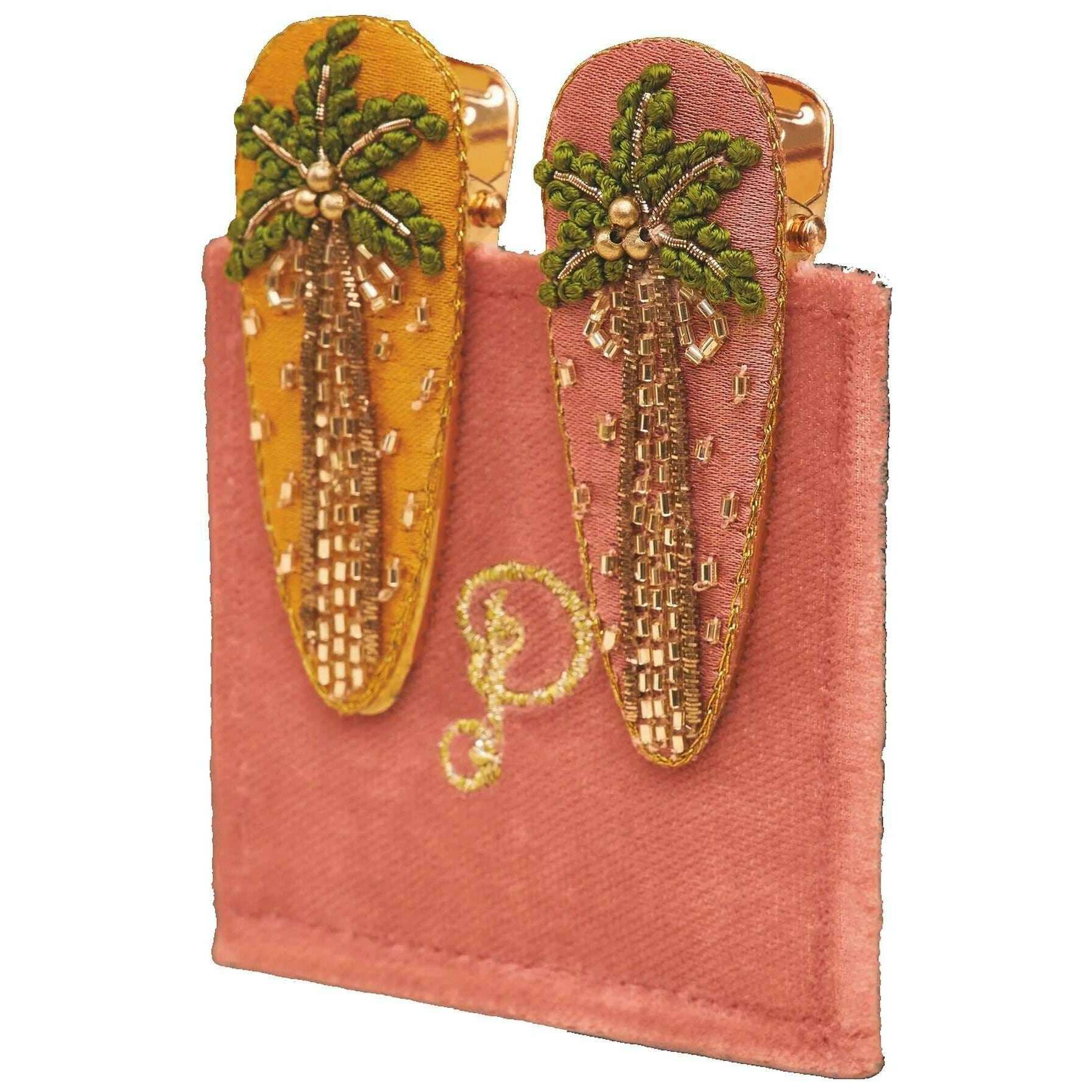 Designer Powder heeft dit fluwelen haaraccessoire van 100% polyester voor dames uitgebracht in roze/groen/oranje tinten. Het meet 8 cm (hoogte) x 7 cm (breedte). Haaraccessoires in een verpakking van 2 stuks bieden waar voor uw geld en zorgen ervoor dat ze een goede koop zijn. Alle haaraccessoires worden compleet geleverd met poederverpakking. De Powder Palm Trees Haarclips - Roze/Groen/Oranje zullen je haarspel bij elke gelegenheid naar een hoger niveau tillen en een stijlvolle flair toevoegen die mensen zal aan het gapen zijn. Deze set van 2 haarclips is prachtig verfraaid met een ingewikkeld kralenontwerp en borduursel en is een musthave voor je collectie.