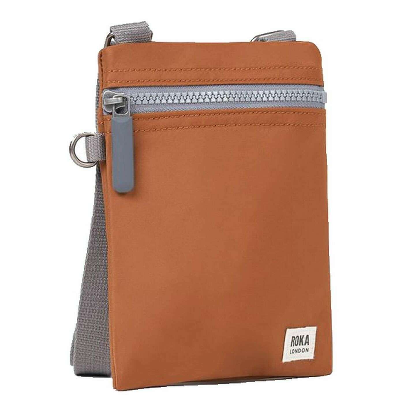 Roka Chelsea XS gerecycled nylon pocket sling tas - Bran Brown