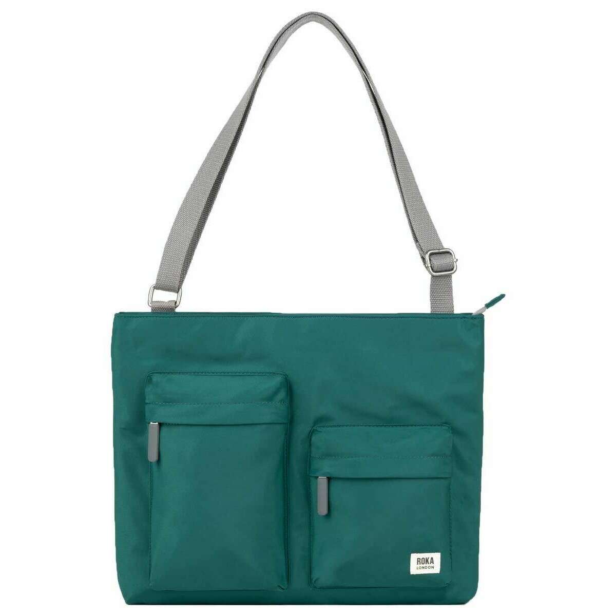 Roka Moorgate M medium gerecycled nylon crossbody tas - groenblauw