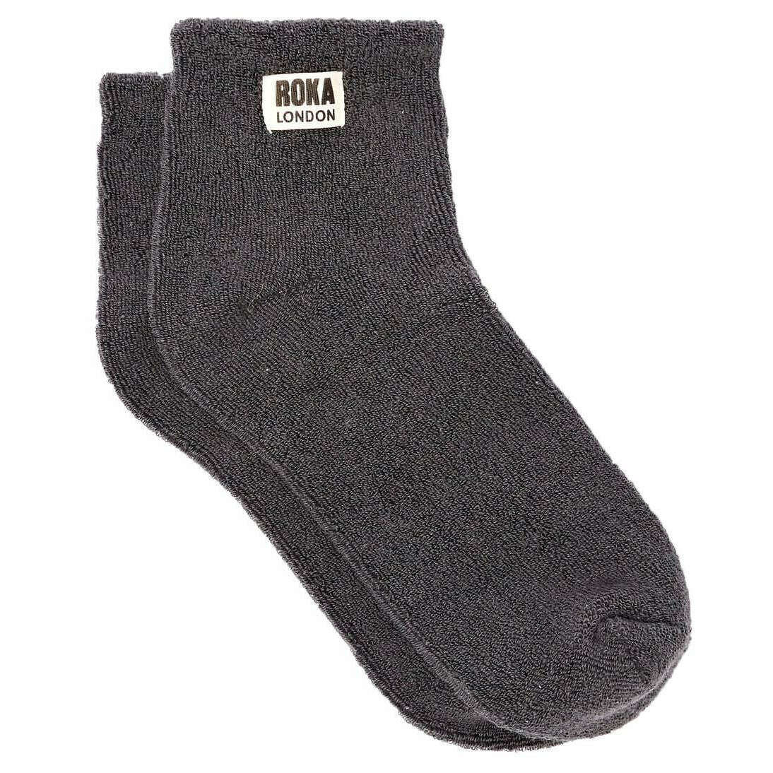 Ontwerper Roka heeft deze damessokken van 82% biologisch katoen, 10% nylon en 2% elastaan voor je gemaakt in vervaagde zwarte tinten. Ook de vervaagde zwarte sokken zijn ontworpen in een effen patroon. Alle sokken worden compleet geleverd met roka-verpakking. De Roka Watford Sokken - Faded Black zijn de perfecte sokken voor dagelijks gebruik. De organische pluizige katoenmix zorgt ervoor dat je voeten de hele dag lekker warm en comfortabel blijven, terwijl de prachtige zwarte kleur ervoor zorgt dat je er stijlvol en trendy uitziet. Deze sokken zijn voorzien van een Roka-logo op de zijkant gestikt, waardoor ze een onmisbare look krijgen.