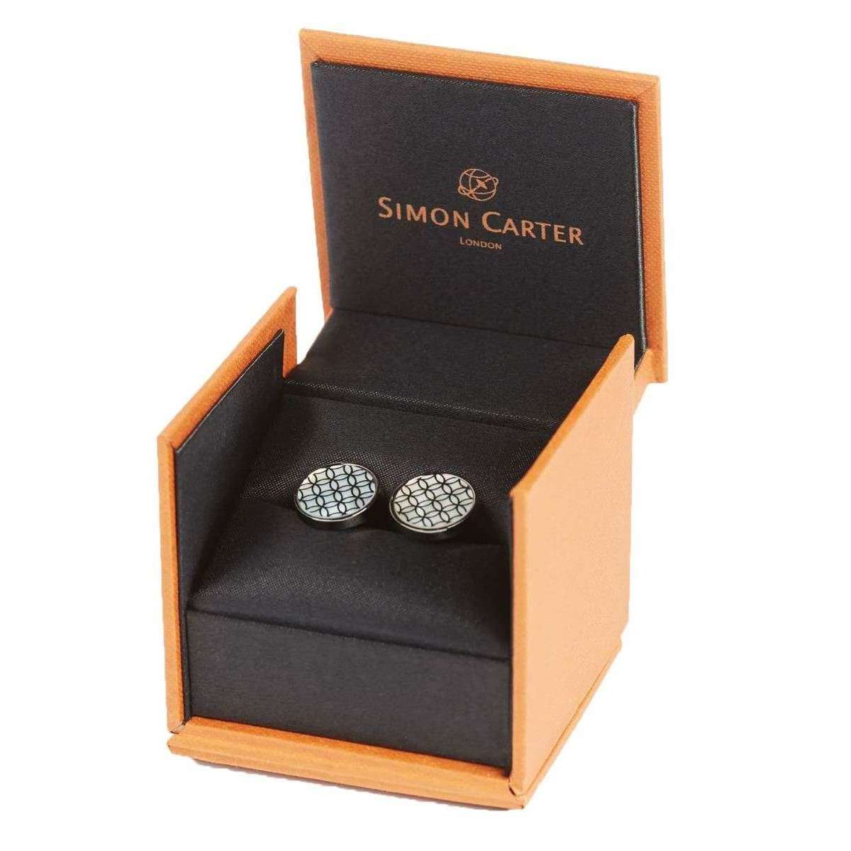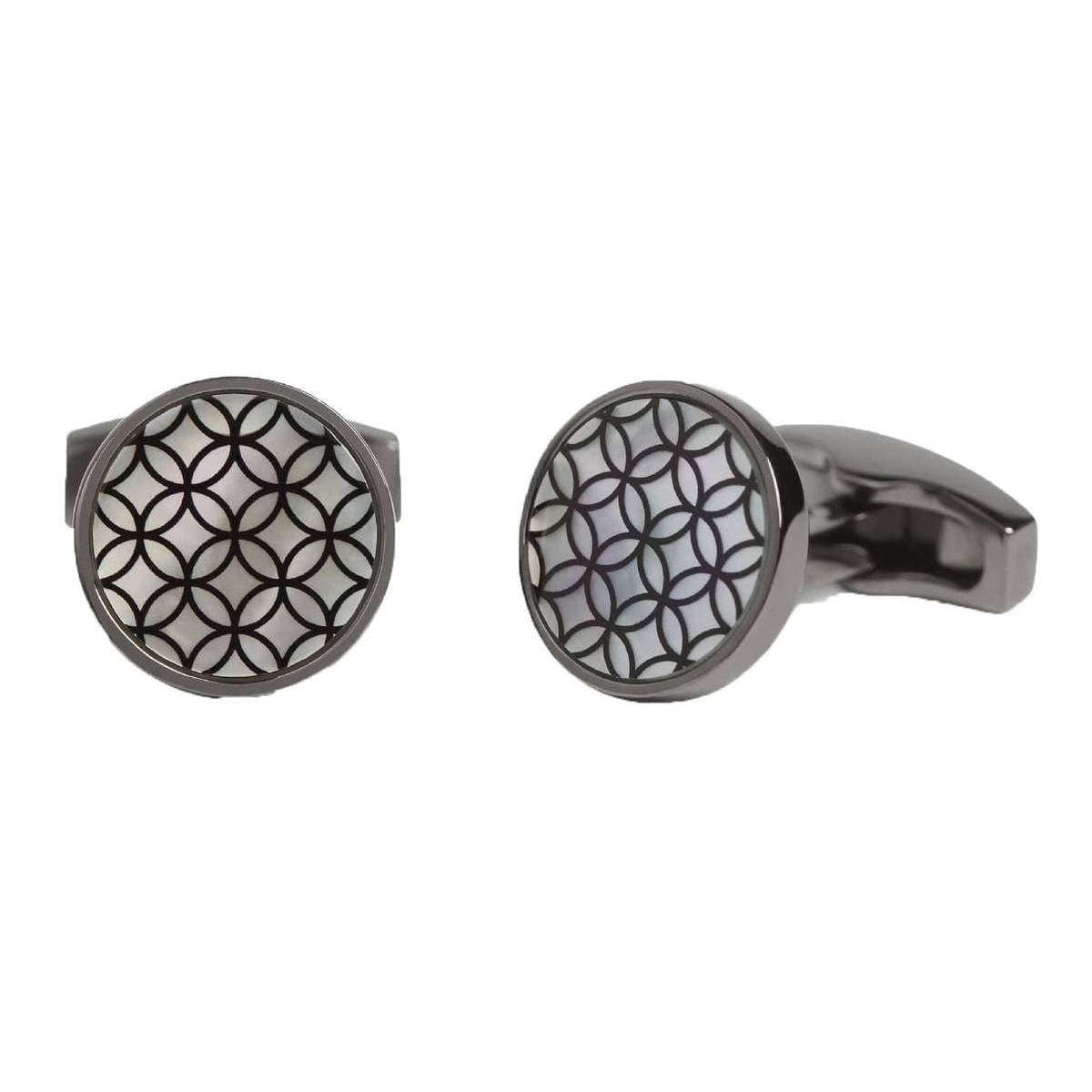Simon Carter Moeder van Pearl Lattice Cufflinks - Gunmetal Gray/White