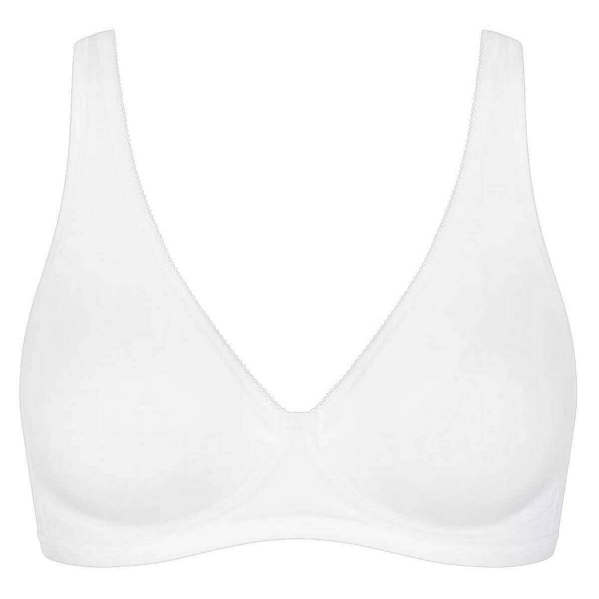 Deze dames basic+ zachte bh is gemaakt van 80% katoen, 18% elastaan en 2% polyamide, uitgevoerd in een witte kleur en is van het merk Sloggi. Ook het witte ondergoed is ontworpen in een effen patroon. Het wordt aanbevolen om in de machine te wassen op 40 graden om dit ondergoed in goede staat te houden. Al het ondergoed wordt compleet geleverd met een sloggi-verpakking. De Sloggi Basic+ Zachte Bh - Wit is een musthave voor vrouwen die op zoek zijn naar ultracomfort en luxe. Deze bh is gemaakt van hoogwaardig biologisch katoen dat lang meegaat en tegelijkertijd het zachte gevoel en de elasticiteit behoudt. De niet-gewatteerde voorgevormde cups, medium ondersteuning en verstelbare bredere bandjes zijn zorgvuldig ontworpen om een ​​comfortabele pasvorm voor dagelijks gebruik te garanderen, en de naadloze pasvorm geeft een onzichtbare look onder elke outfit.