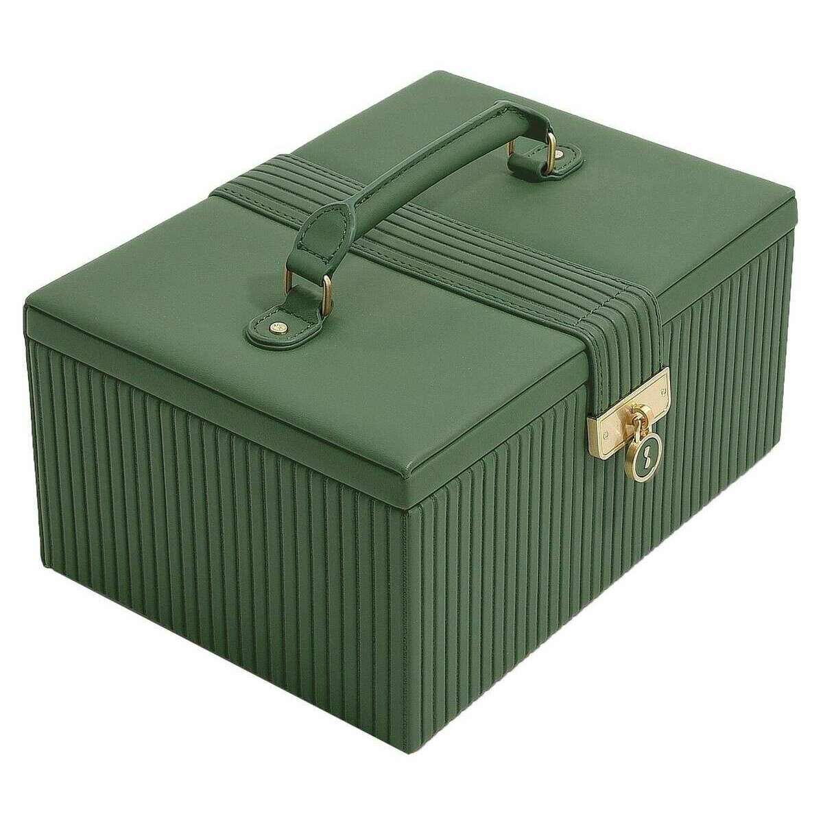 Dit klassieke damessieradendoosje is gemaakt van kunstleer en fluweel, uitgevoerd in een groene kleur en is van het merk Stackers. De afmetingen zijn 16,3 cm (hoogte) x 25 cm (breedte) x 18 cm (diepte). Alle sieradendoosjes worden compleet geleverd met stapelverpakking. De Stackers Classic Sieradendoos - Smaragdgroen heeft een prachtig groen geribbeld ontwerp, waardoor deze sieradendoos een stijlvolle en verfijnde uitstraling krijgt. Compleet met ringrollen voor ringen en oorknopjes, en een groter gedeelte eronder voor grotere sieraden en accessoires.