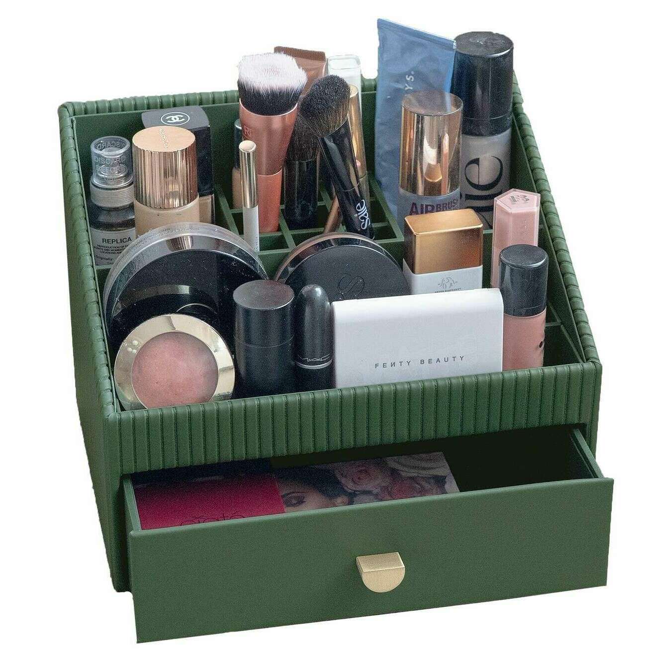 Deze klassieke make-up organizer voor dames van het merk Stackers is gemaakt van kunstleer en pvc en is uitgevoerd in het groen. De afmetingen zijn 19 cm (hoogte) x 25 cm (breedte) x 18 cm (diepte). Alle make-up organizers worden compleet geleverd met een stapelverpakking. De Stackers Classic Makeup Organizer - Emerald Green beschikt over meerdere compartimenten voor uw make-up of huidverzorgingsproducten. Deze prachtige geribbelde groene make-up organizer heeft een lade voor grotere producten, perfect om georganiseerd te blijven en ruimte te besparen!